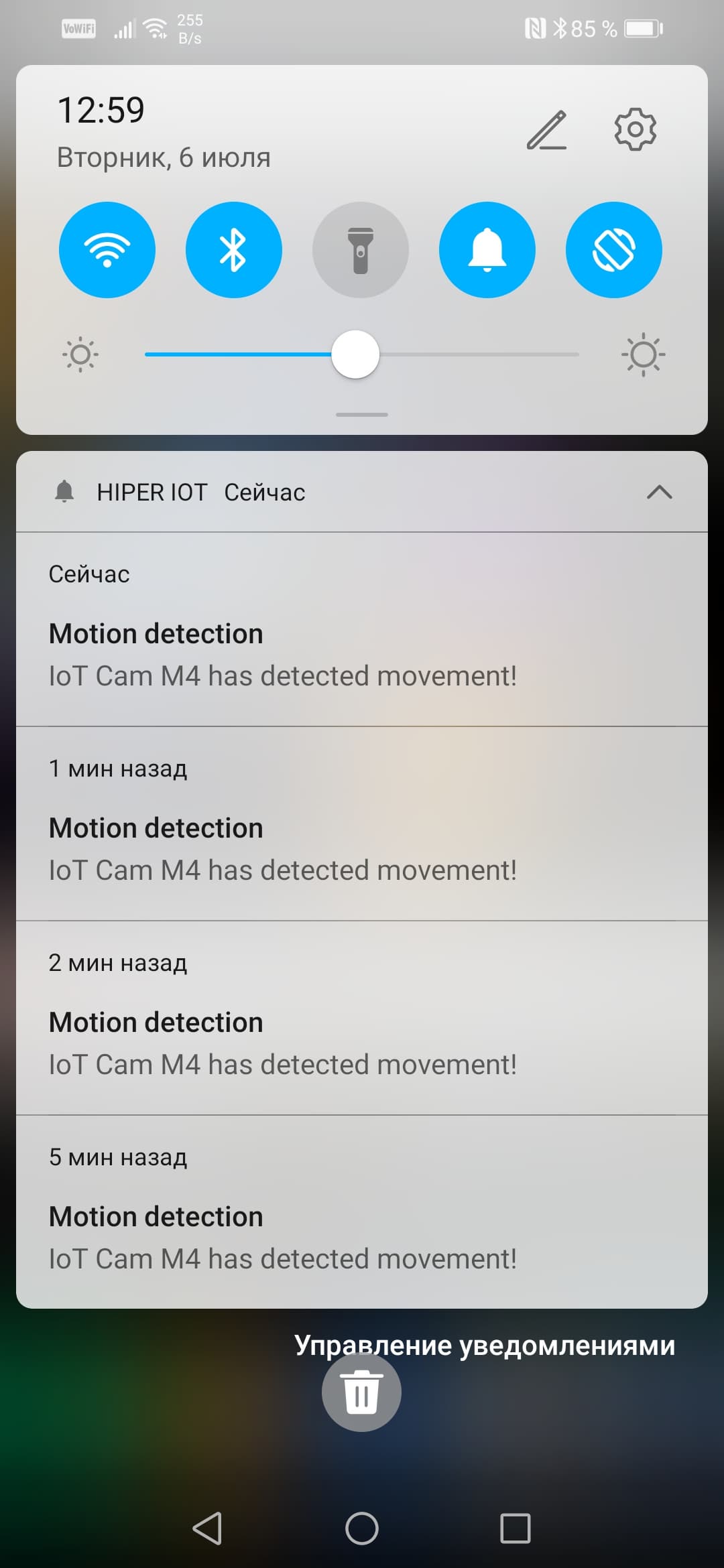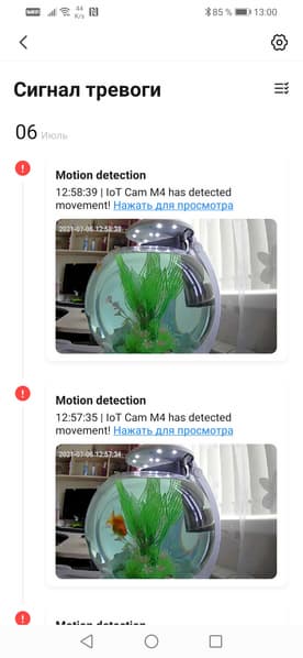 Функция оповещений о наличии движения работает безупречно. Push-уведомления так и сыплются на смартфон, подобно банковским угрозам о доступности всяких кредитов. Каждое уведомление разрешается просмотреть в виде стоп-кадра или ролика.