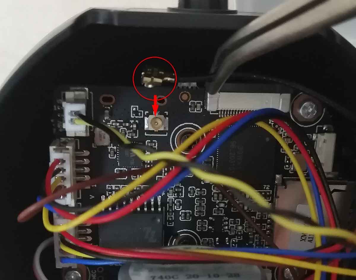Ну и каков результат? Связь камеры с роутером тут же наладилась. Хотя все равно уровень сигнала оставался недостаточно высоким, достигая лишь 30%-40% на расстоянии трех метров от роутера. Тут возникает подозрение в механической проблеме. Точнее, в качестве сборки камеры. Вполне вероятно, при сборке пошло что-то не так, и Wi-Fi-антенна осталась неприсоединенной к плате. И знаете что? Оно так и оказалось!
