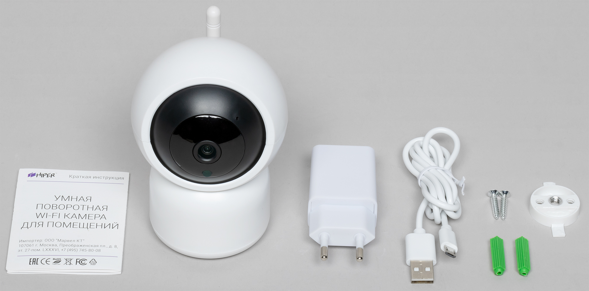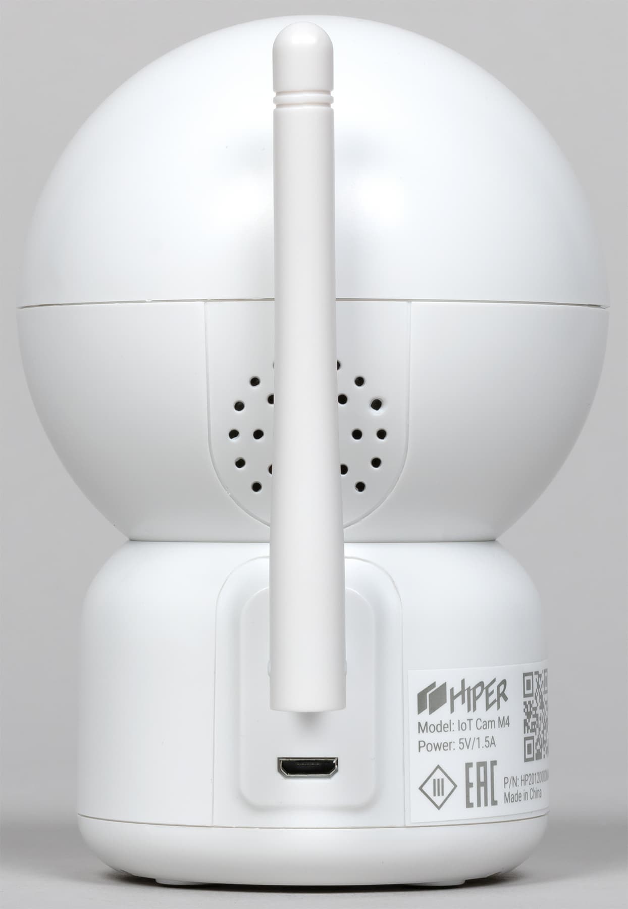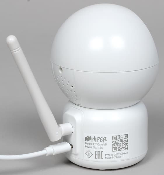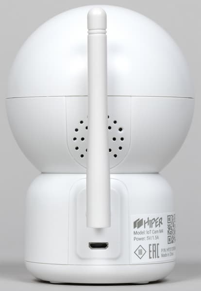 Камера получает питание через обычный разъем Micro-USB, а наклон и поворот Wi-Fi-антенны ограничены так, чтобы она не задевала кабель.