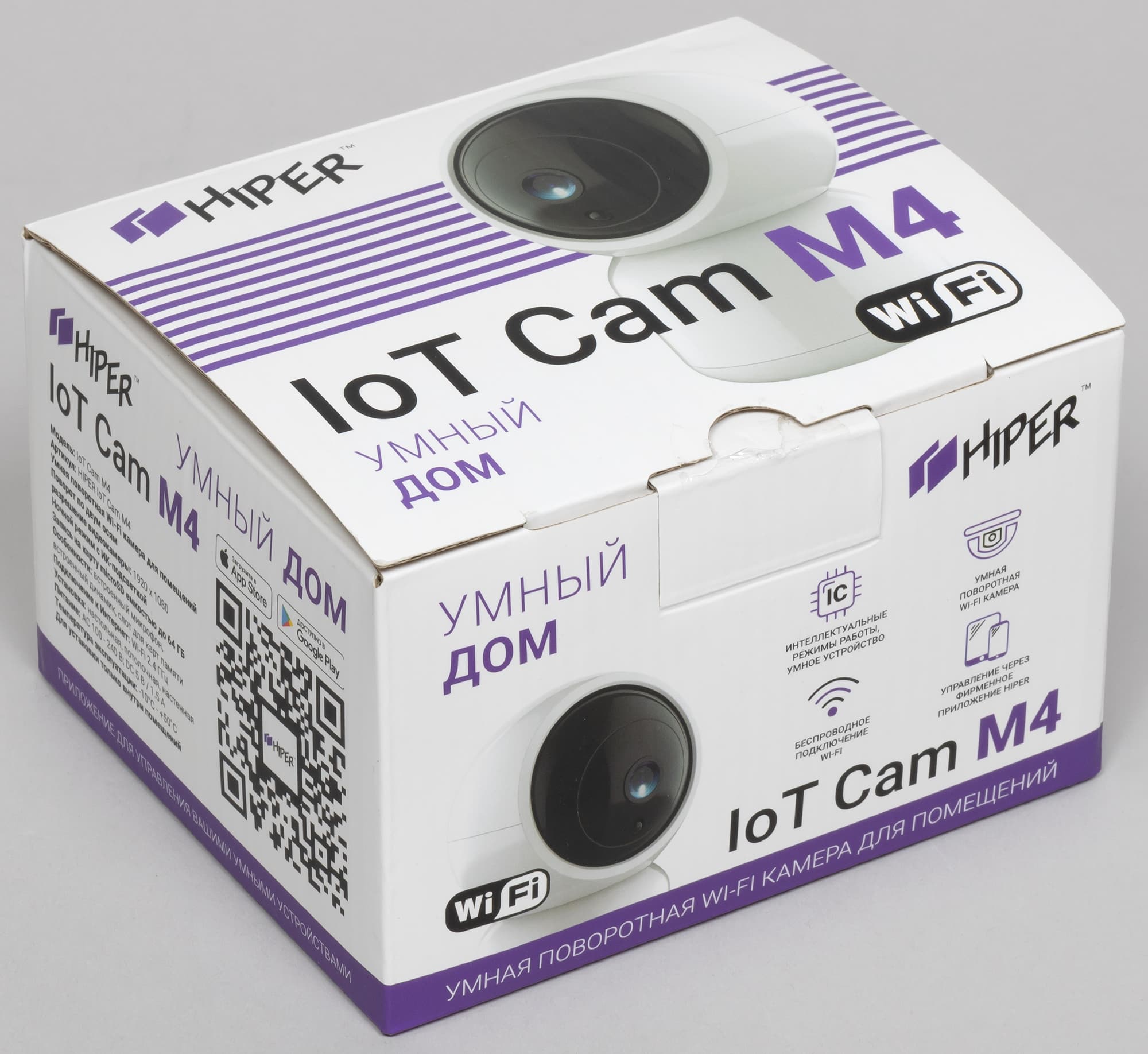 Неброский стильный дизайн, уверенная круглосуточная работа, двусторонняя аудиосвязь, низкое энергопотребление, мгновенные оповещения о событиях, интеграция в умный дом Hiper IoT — таковы отличительные признаки рассмотренной камеры Hiper IoT Cam M4. Перечислим наиболее характерные моменты: