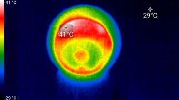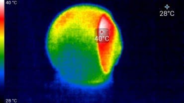 Видно, что основной нагрев происходит в верхней части шарового блока камеры, где находится сенсор и основная управляющая электроника. Эти 41 °C не несут никакой опасности ввиду смехотворности цифры.