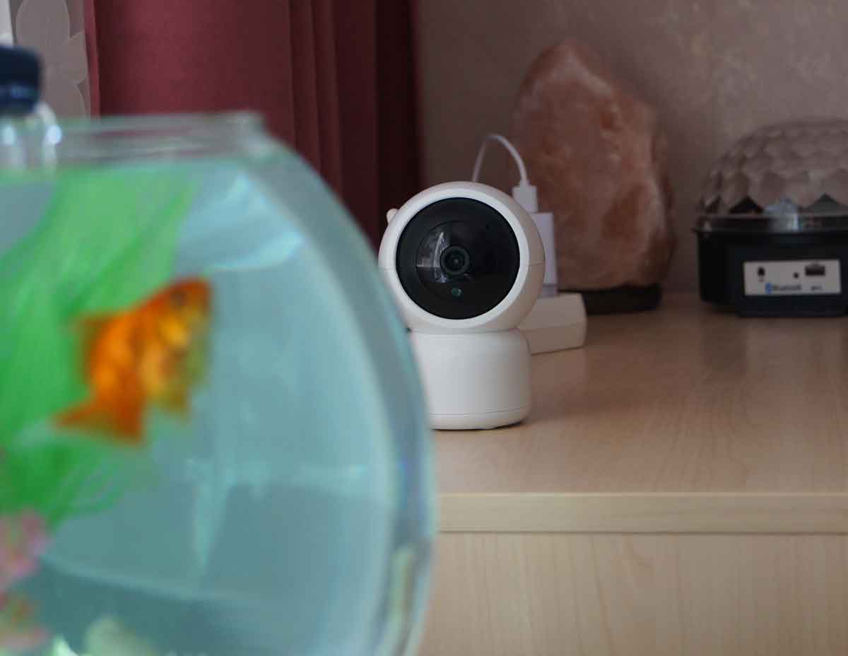 Устанавливать камеру желательно так, чтобы в объектив не попадал источник яркого света. Нет, не так. Камера ведь поворотная. Правильнее сказать так: яркий свет не должен попадать в объектив, когда он направлен на какую-то ключевую зону. Рабочее место, детская кроватка, входная дверь — объектом наблюдения может быть что угодно. В нашем случае это небольшой аквариум, пусть он для кого-то и не является значащим объектом.