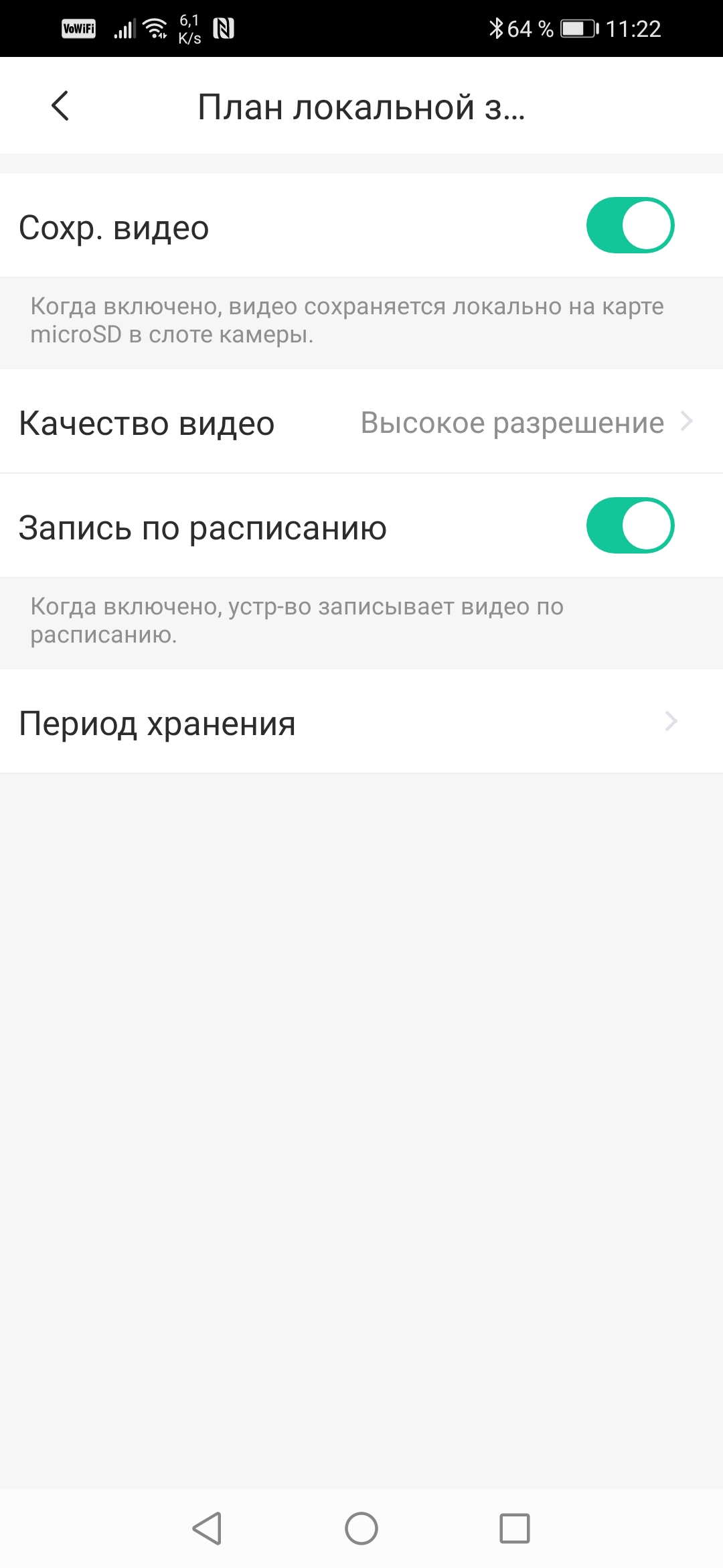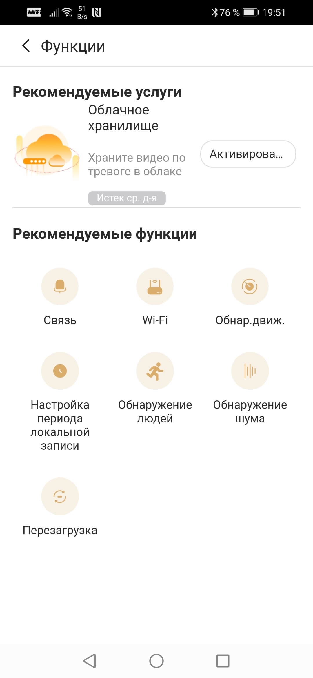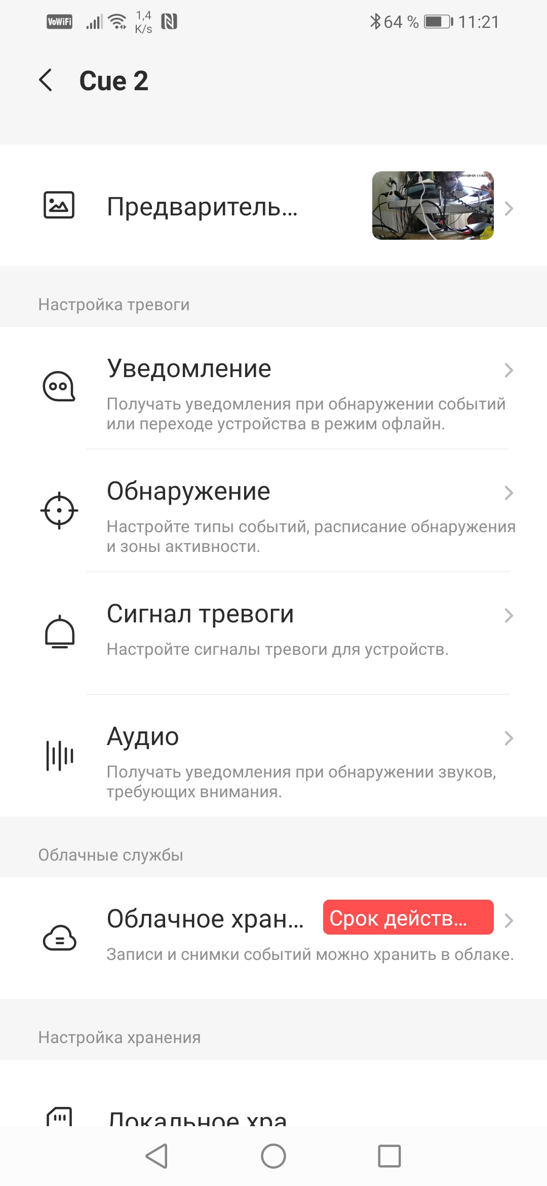 Прочие настройки камеры очевидны, хотя и несколько запутанны вследствие особенностей строения приложения. Например, попасть в настройки камеры можно не одним путем, а двумя. Также иногда сбивают с толку рекомендации, которые можно принять за настройки. Главная рекомендация — конечно же, предложение подписаться на услуги облачного хранения. Они не бесплатны, хотя и имеется 7-дневный пробный период.
