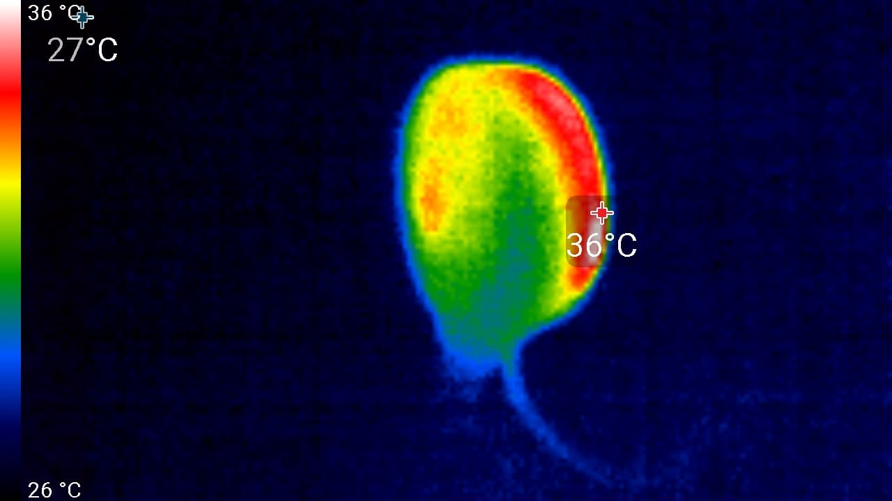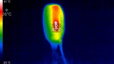 Наконец, о нагреве устройства. Работа ему предстоит длительная. Обычно это режим 24/7. То есть время для нагрева имеется. Следующие снимки сделаны тепловизором после суток работы камеры в помещении с температурой 25 °C.