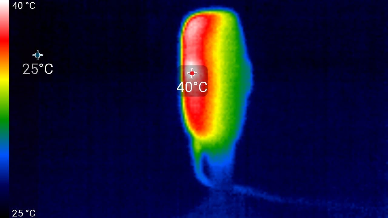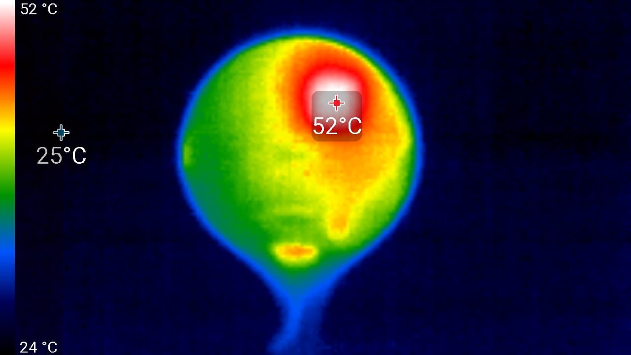 Видно, что основной нагрев происходит в верхней части корпуса, где, по всей видимости, находится процессор. Эти 52 °C вряд ли несут опасность ввиду точечного нагрева малой площади.