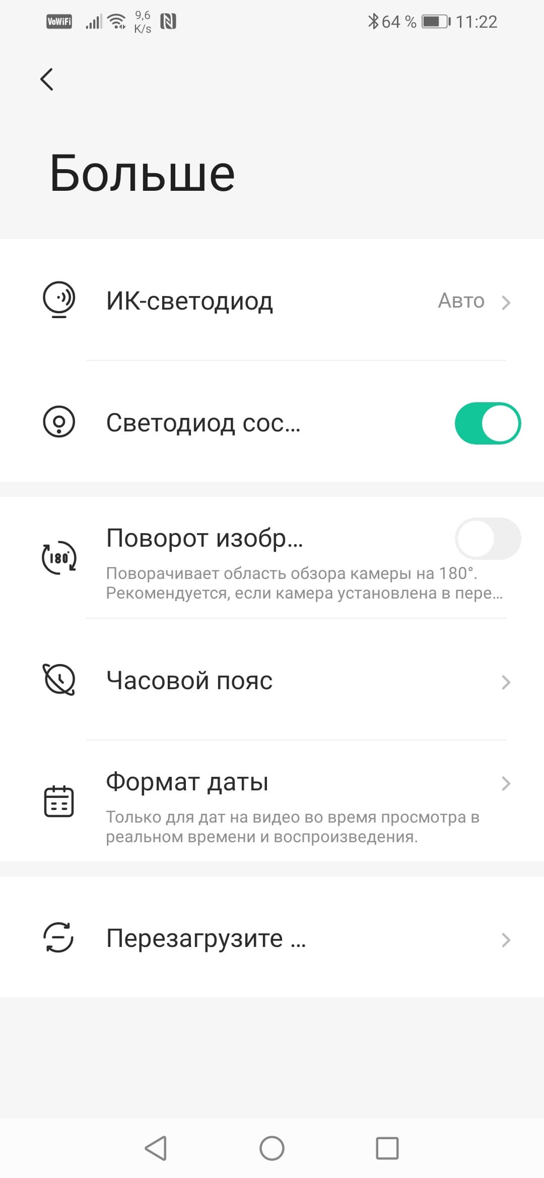 Настройки камеры, имеющиеся в приложении, содержат лишь наиболее востребованные функции, касающиеся повседневного использования: детекция активности, настройка уведомлений и т. д.