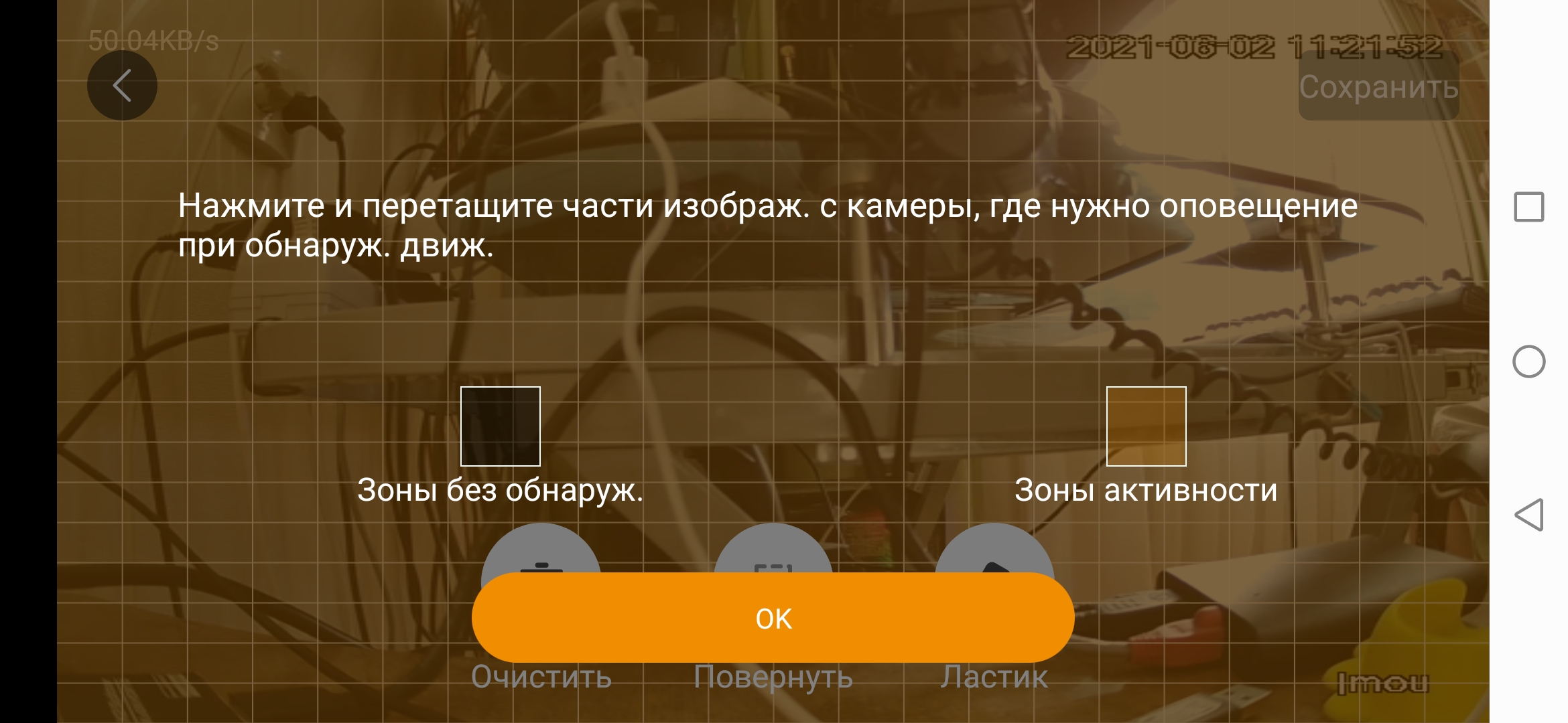А вот выбор зоны для детекции движения сделан прелесть как удобно: он производится в отдельном окне, ее нужно просто нарисовать пальцем.