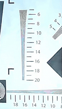 Особенности оптической системы камеры и ее кодека дают эффект, мешающий точному измерению разрешающей способности: алиасинг, который выражается в заметной ступенчатости контрастных наклонных границ, а также в ярко представленном цветном муаре.