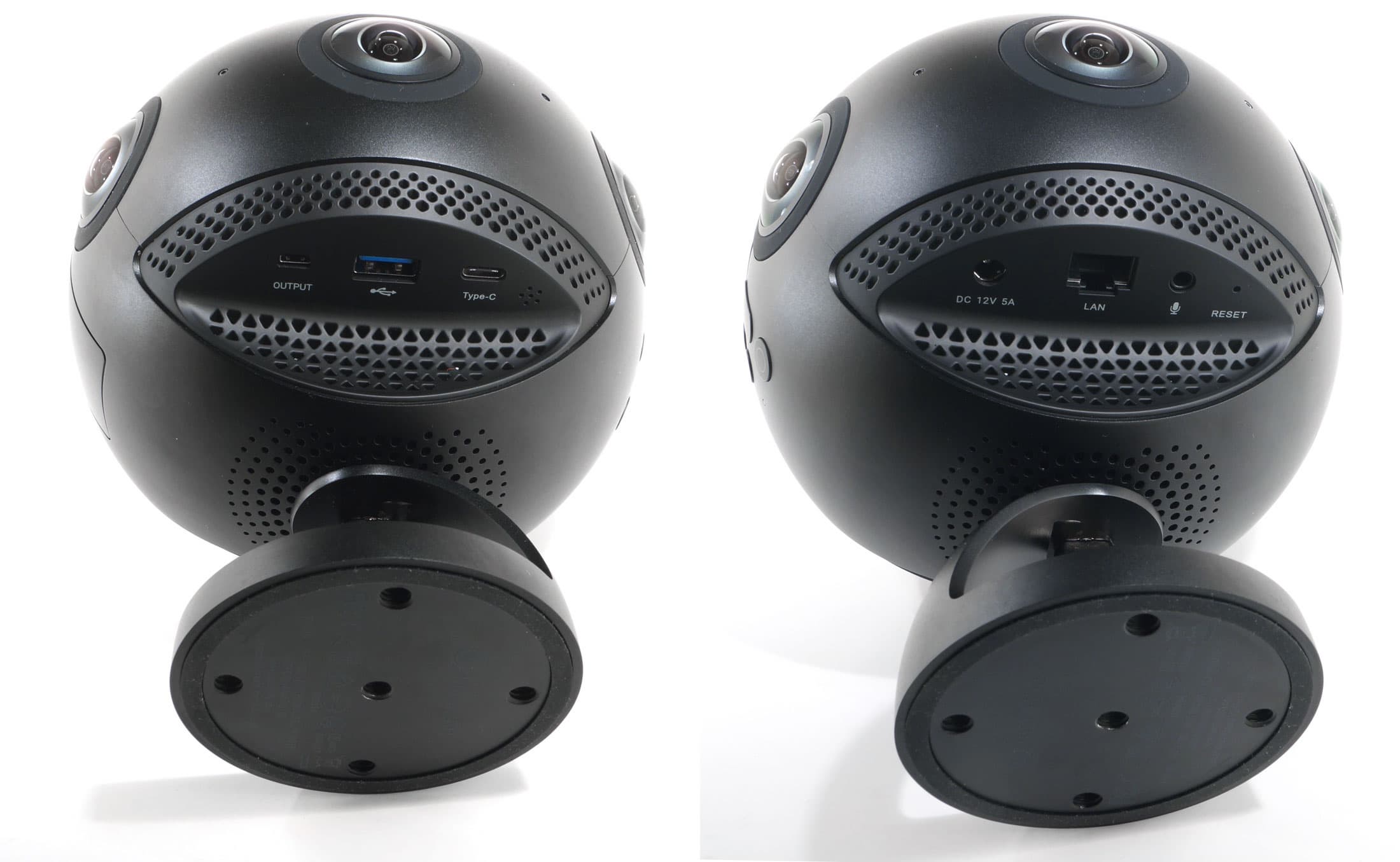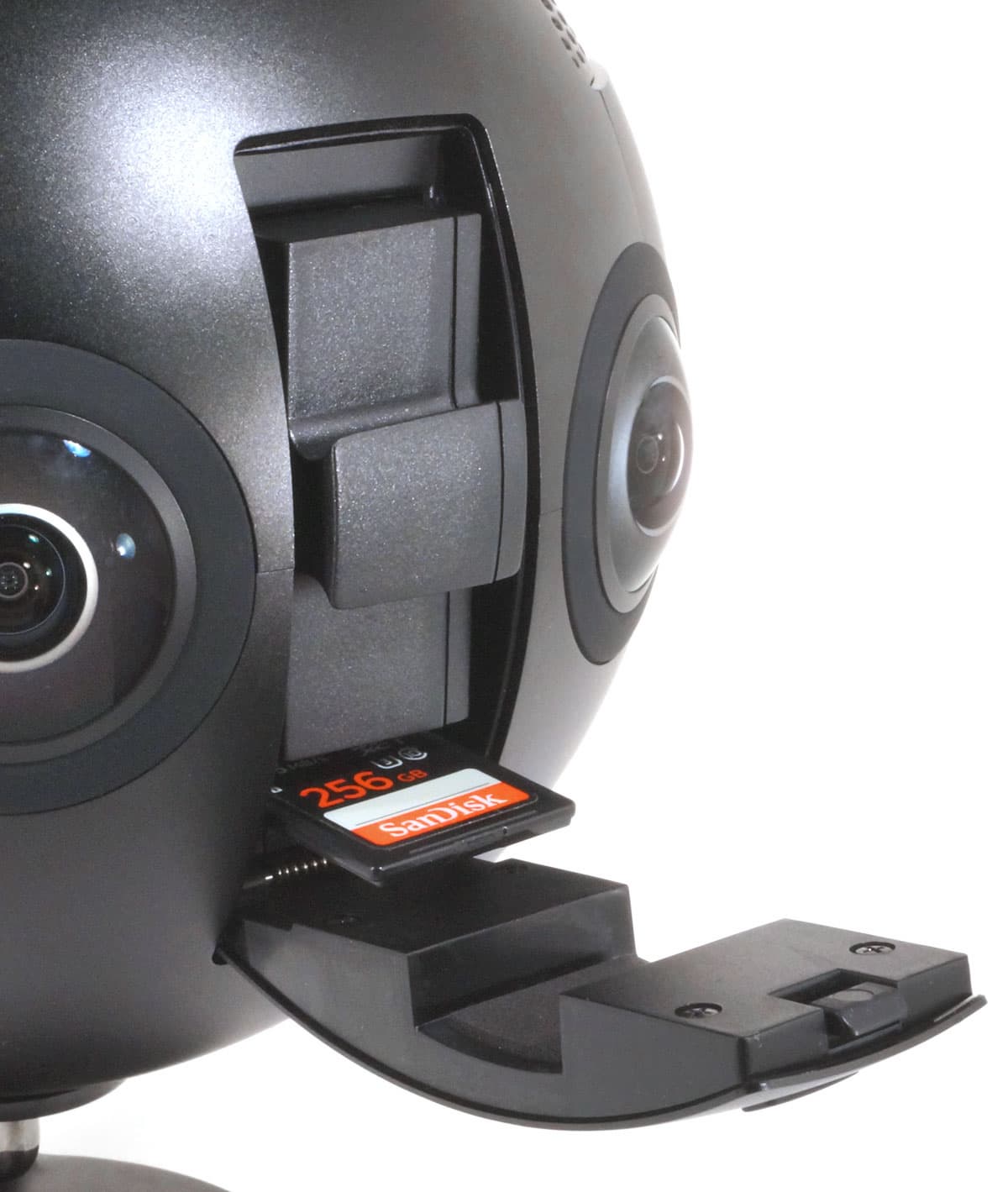 Корпус аппарата изготовлен из алюминия с пластиковыми вставками. Необычная с виду конструкция обусловлена необходимостью: линзы объективов, обеспечивающие угол обзора 200°, не должны «видеть» никаких выступающих частей камеры. Отсюда и шарообразная форма, отсюда же и опорная площадка относительно небольшого диаметра, которая не попадает в поле зрения объективов.
