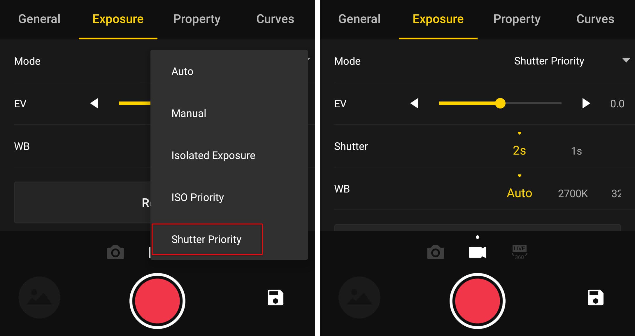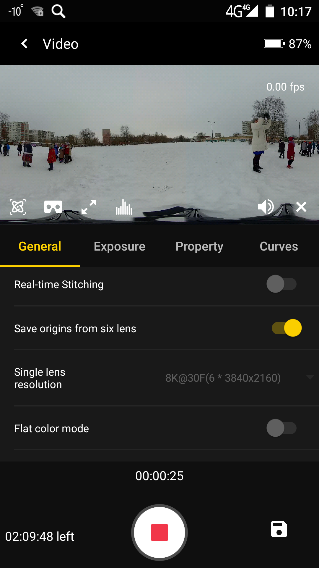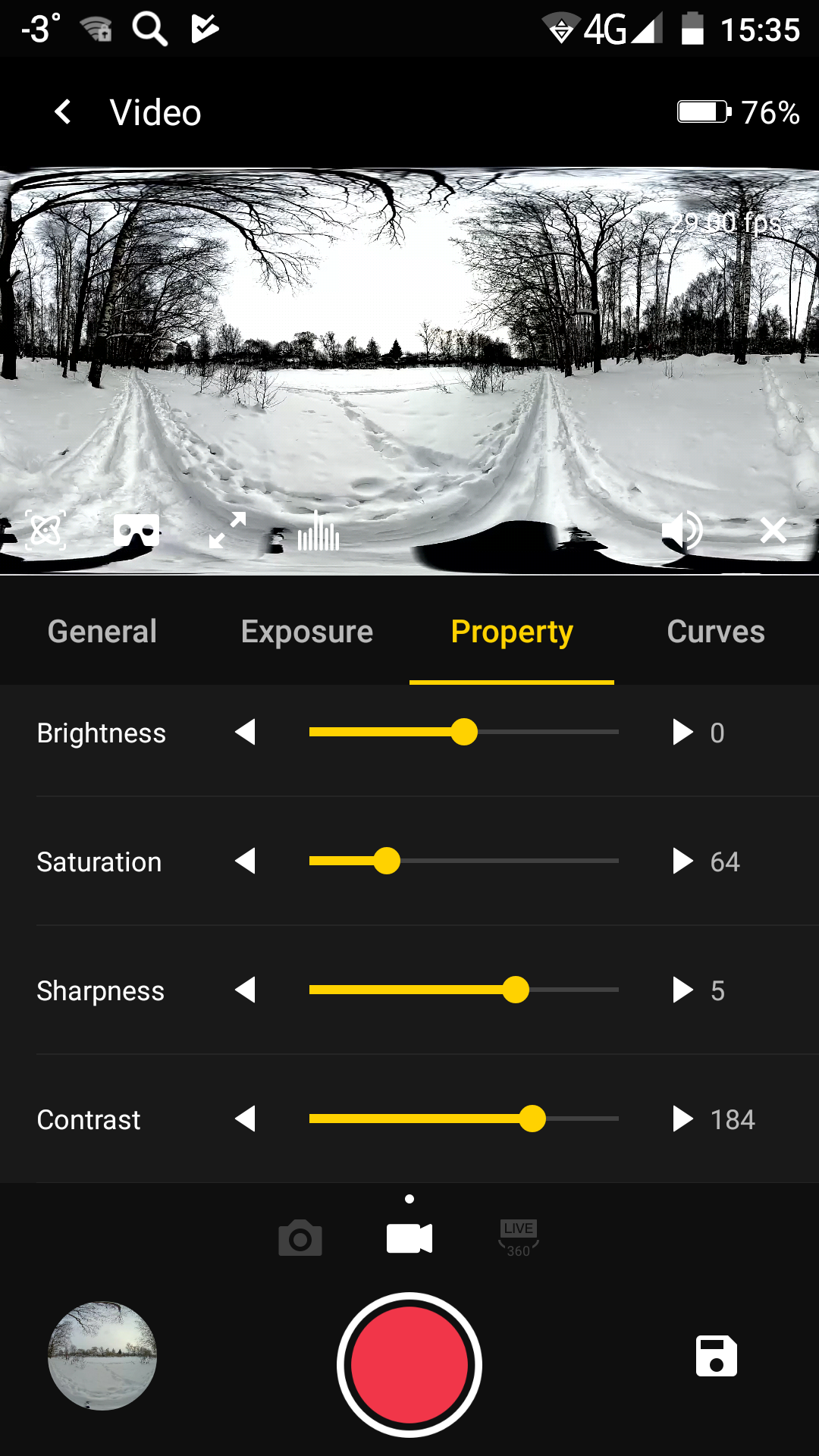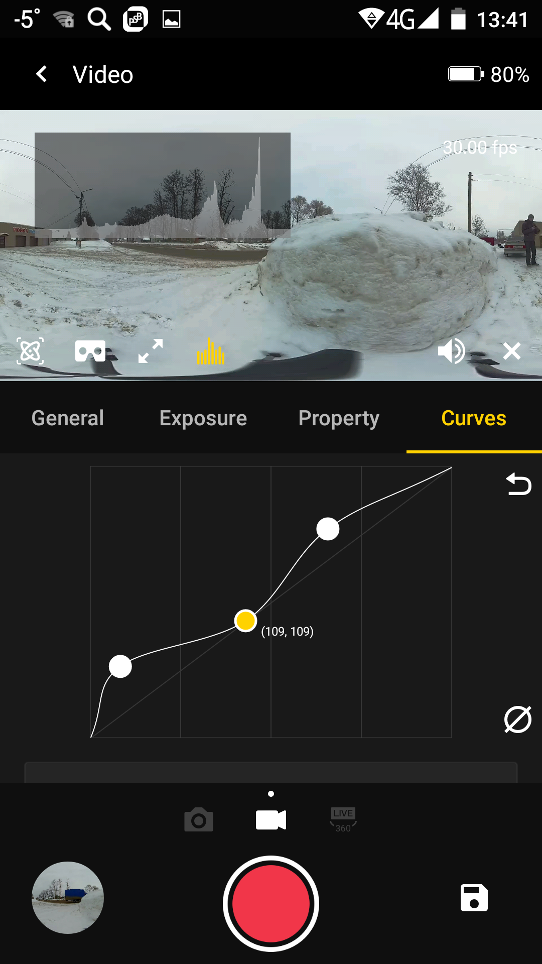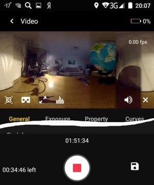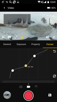 Имеющиеся настройки позволяют выбрать любой из существующих режимов записи, подправить яркость, контрастность, баланс белого, и даже создать заказную кривую. Просмотр записанного материала также возможен непосредственно из приложения, в этом случае на смартфон будет транслироваться ролик с невысоким разрешением и без звука, который создается камерой автоматически во время любой записи.