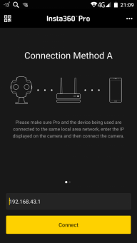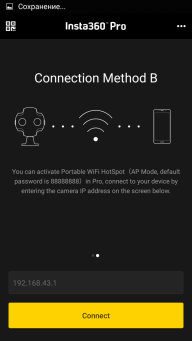 Мобильное приложение, которым управляется камера, называется Insta360 Pro Camera Control App, и оно заслуживает похвалы. Продуманное, не «падающее», оно приятно удивляет количеством доступных настроек. Процесс соединения мобильного устройства с камерой заключается в обычном «спаривании» обоих аппаратов по технологии Wi-Fi direct, когда смартфон подключается к беспроводной точке, которую создает камера. Существует и второй способ связи — посредством подключения камеры к имеющейся Wi-Fi-точке.
