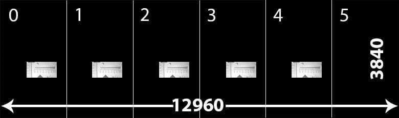 Прежде чем браться за съемку, необходимо понять алгоритм получения камерой изображения. Результатом видеосъемки в максимально возможном режиме являются шесть видеофайлов, которые записываются камерой на карту памяти одновременно и имеют одинаковые параметры: 3840×2160 с частотой до 30 кадров в секунду. Каждый видеоролик повернут на 90° — похоже на то, как дети и другие неосведомленные пользователи снимают своими телефонами кошечек и другие ценные кадры для публикации в соцсетях. Но в данном случае такой поворот датчика необходим для увеличения высоты конечного кадра, ведь 3840 пикселей — это в 1,7 раза больше, чем 2160. Таким образом, шесть видеопотоков, снятые камерой и составленные вместе, дают невероятных размеров «простыню» с шириной кадра 12960 и высотой 3840 пикселей: