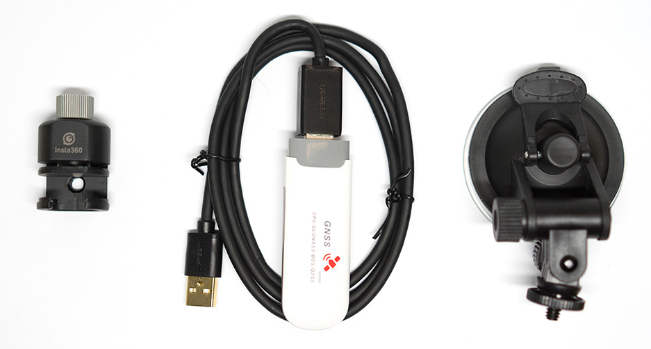 Этот набор, состоящий из USB-устройства, кабеля и крепления с присоской, предназначен для GPS/Глонасс-позиционирования во время съемки. GPS-адаптер, подключенный к камере по USB, передает текущие координаты, которые записываются камерой в отдельный поток параллельно с видеофайлами. Впоследствии, при обработке на ПК, фирменный софт принимает эти данные и внедряет их в финальный материал, который может быть выгружен в сервис Google Street View и другие картографические сервисы.