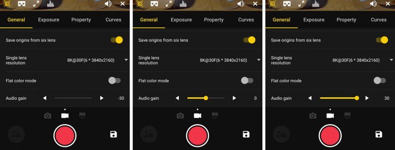 Между прочим, помимо смартфона, для контроля над процессом съемки можно задействовать также VR-очки — в мобильном приложении для этого имеется соответствующий режим вывода изображения. А если включить поверх изображения вывод виртуального горизонта или гистограмму — получается полнофункциональный комплекс управления аппаратом. Любая видеокамера обзавидуется такому дистанционному управлению.