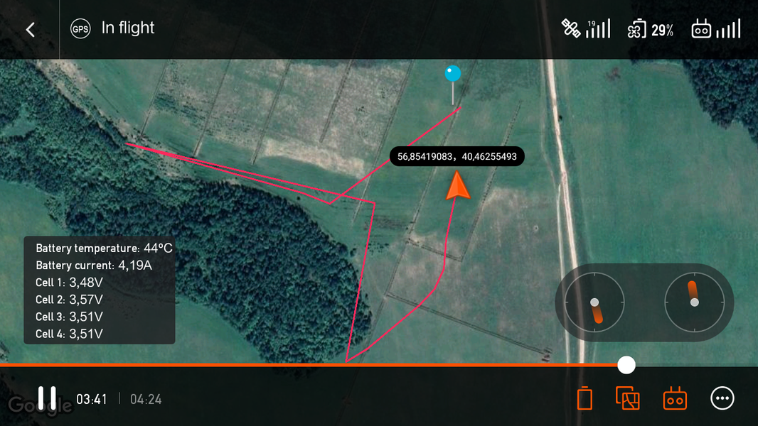 Минус этих функций заключается в том, что все эти команды можно дать лишь во время работы двигателей, то есть когда дрон уже находится в воздухе на автопилоте в режиме зависания. Но беда в том, что запас аккумулятора во время полета тает буквально на глазах. И тыкаться в дисплей смартфона, пытаясь выставить нужные точки по белой карте имени Google, просто нет времени — на счету каждая секунда.