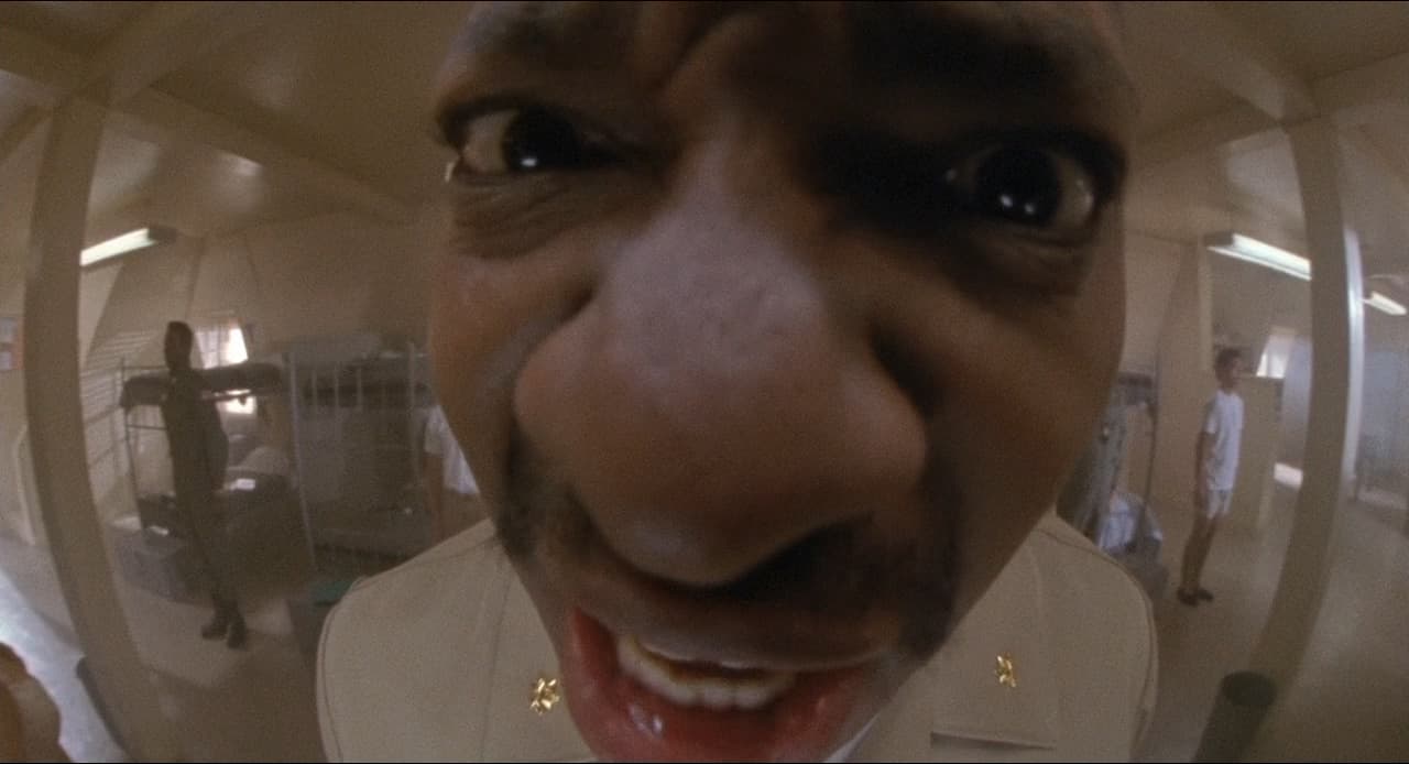 В кино такой брак увидишь лишь в том случае, если он допущен намеренно, по юмористической задумке режиссера/оператора.