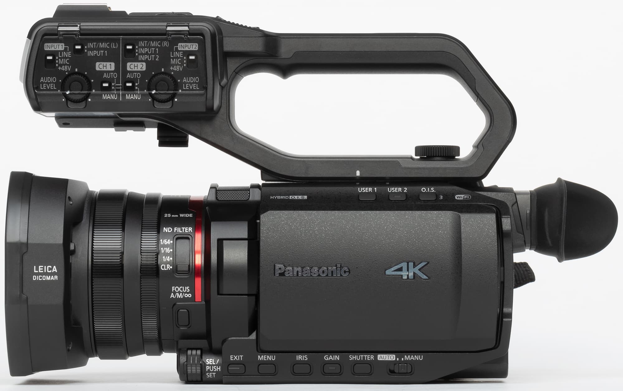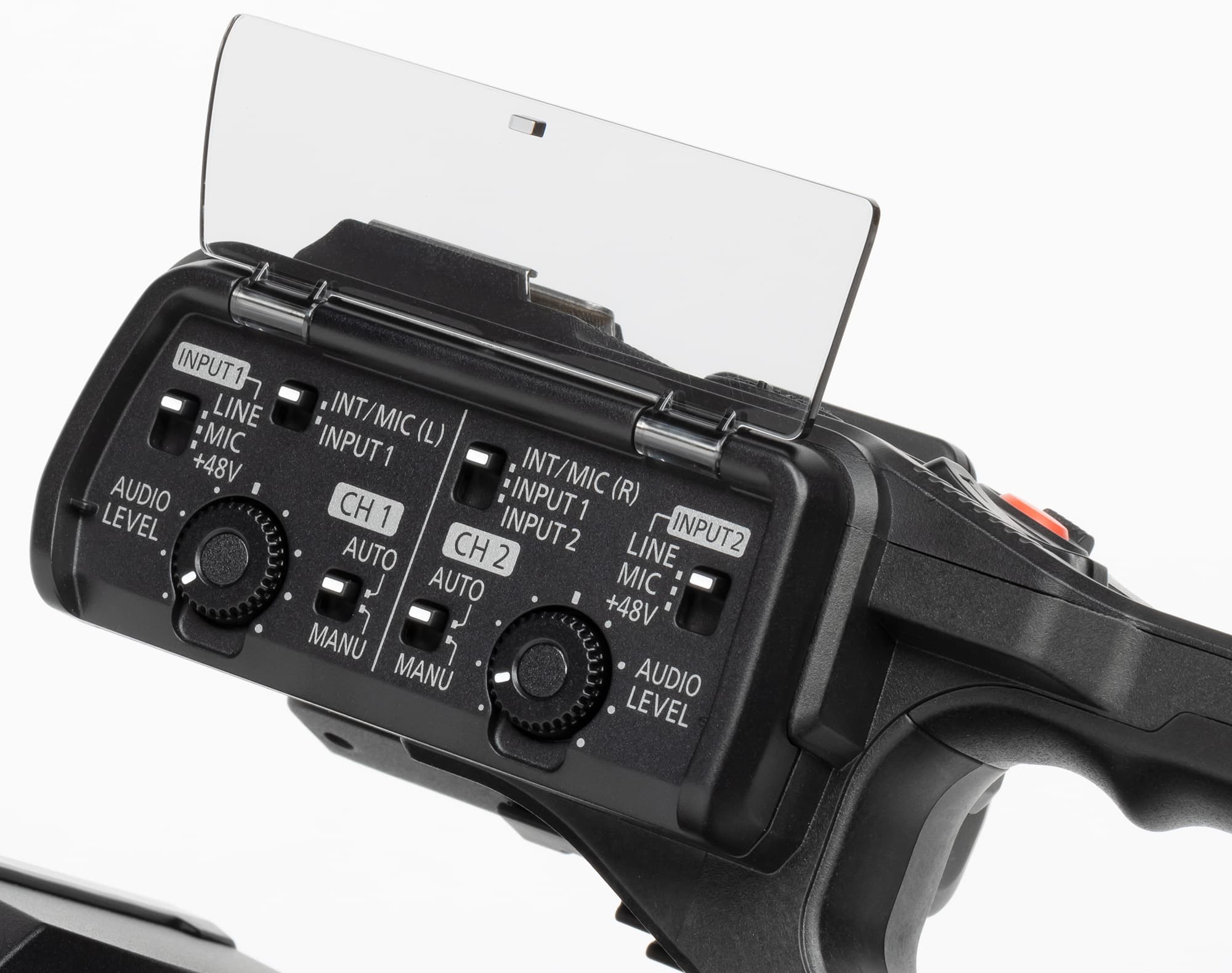 Комплектность младшей модели, Panasonic HC-X1500, будет отличаться отсутствием рукоятки. В зависимости от выбранной комплектности, вы получаете либо Panasonic HC-X1500 (слева), либо Panasonic HC-X2000 (справа).