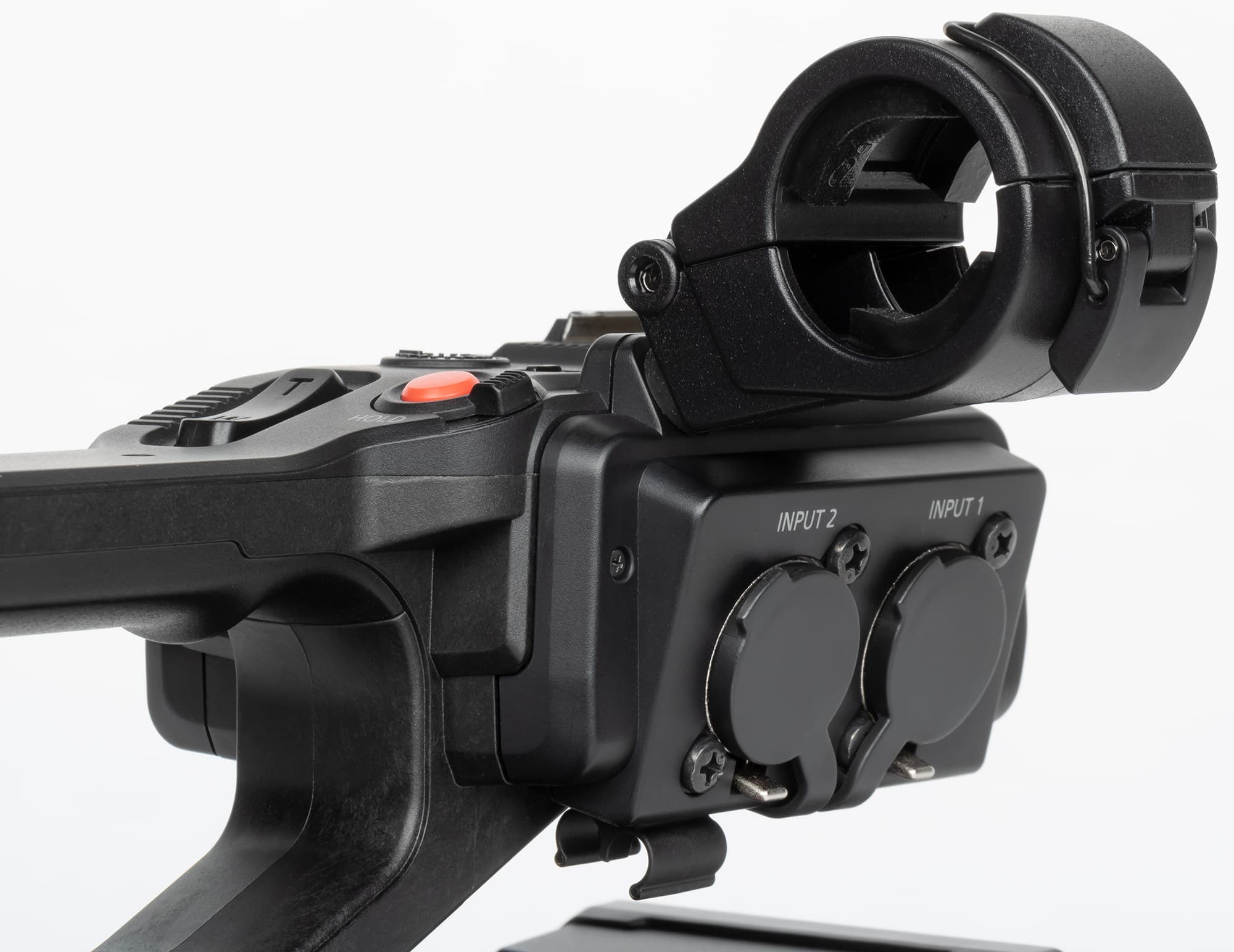 Рукоятка VW-HU1 снабжена двумя XLR-аудиовходами для подключения микрофонов. С другой стороны корпуса рукояти расположена панель с органами управления звуком, защищенная прозрачной крышкой.