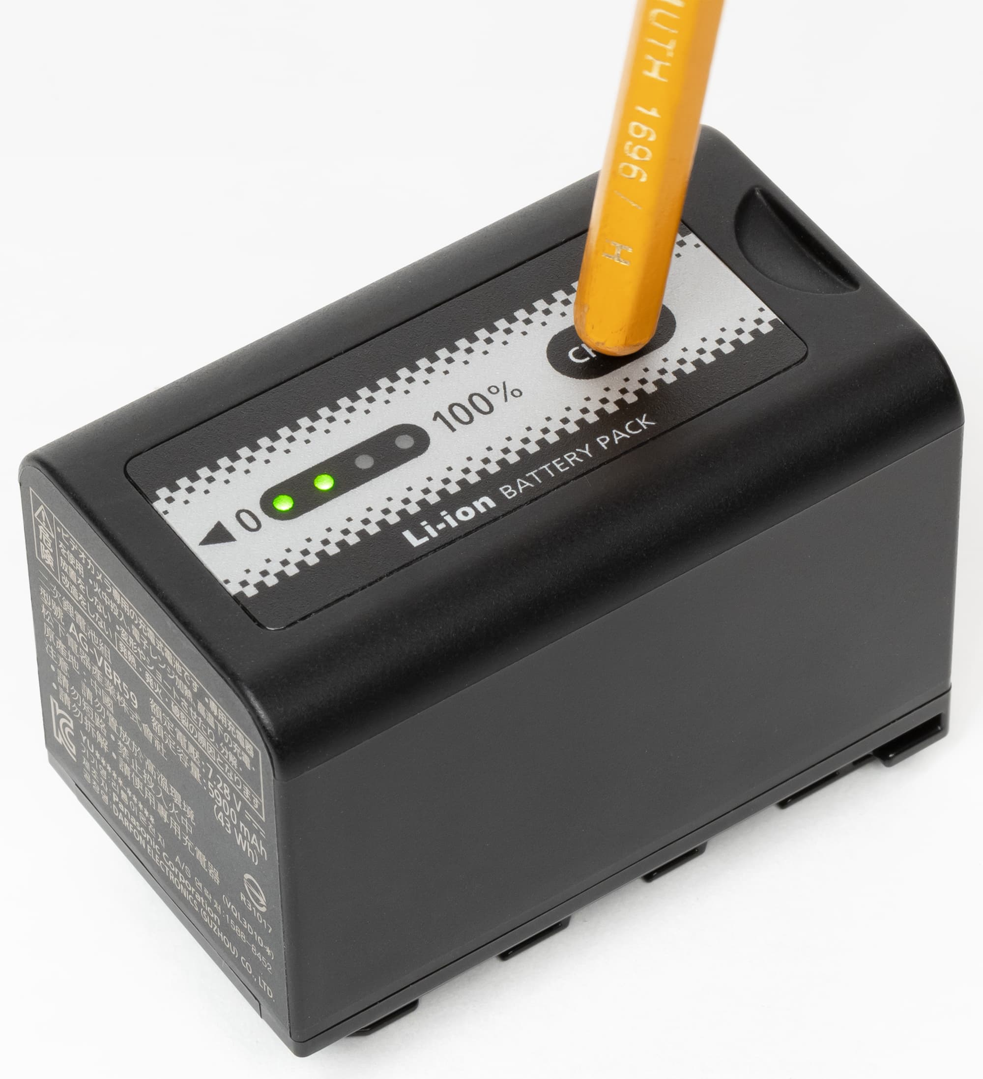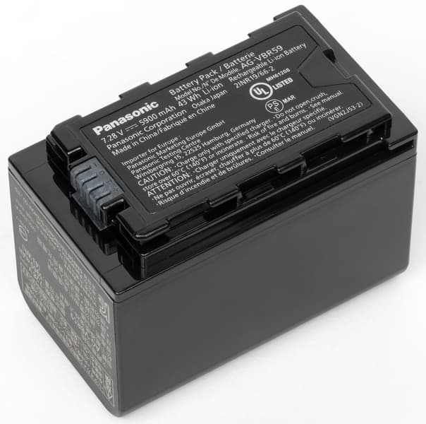 Камера комплектуется литий-ионным аккумулятором AG-VBR59 емкостью 43 Вт·ч. Батарея снабжена системой проверки оставшегося заряда.