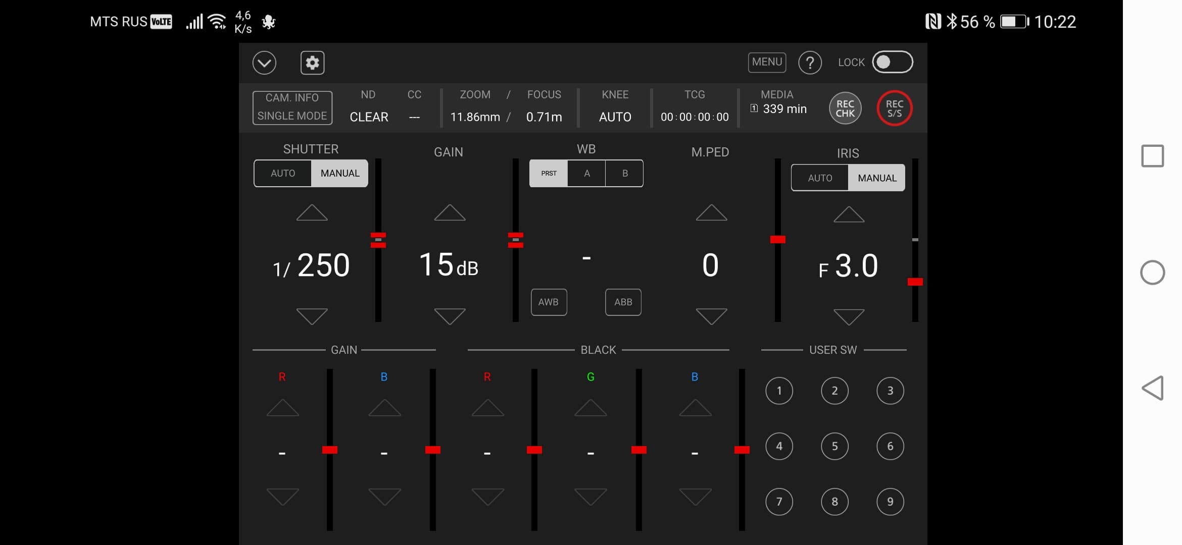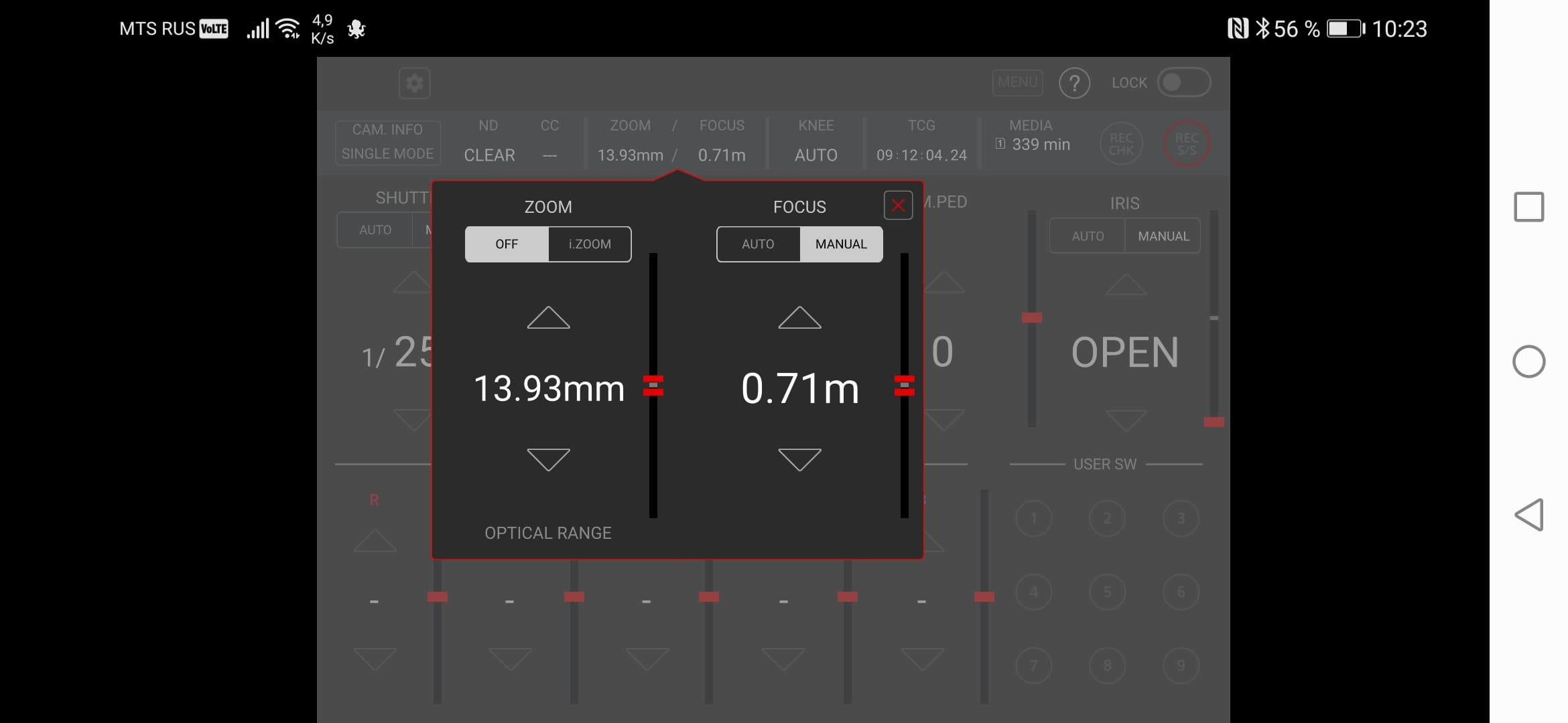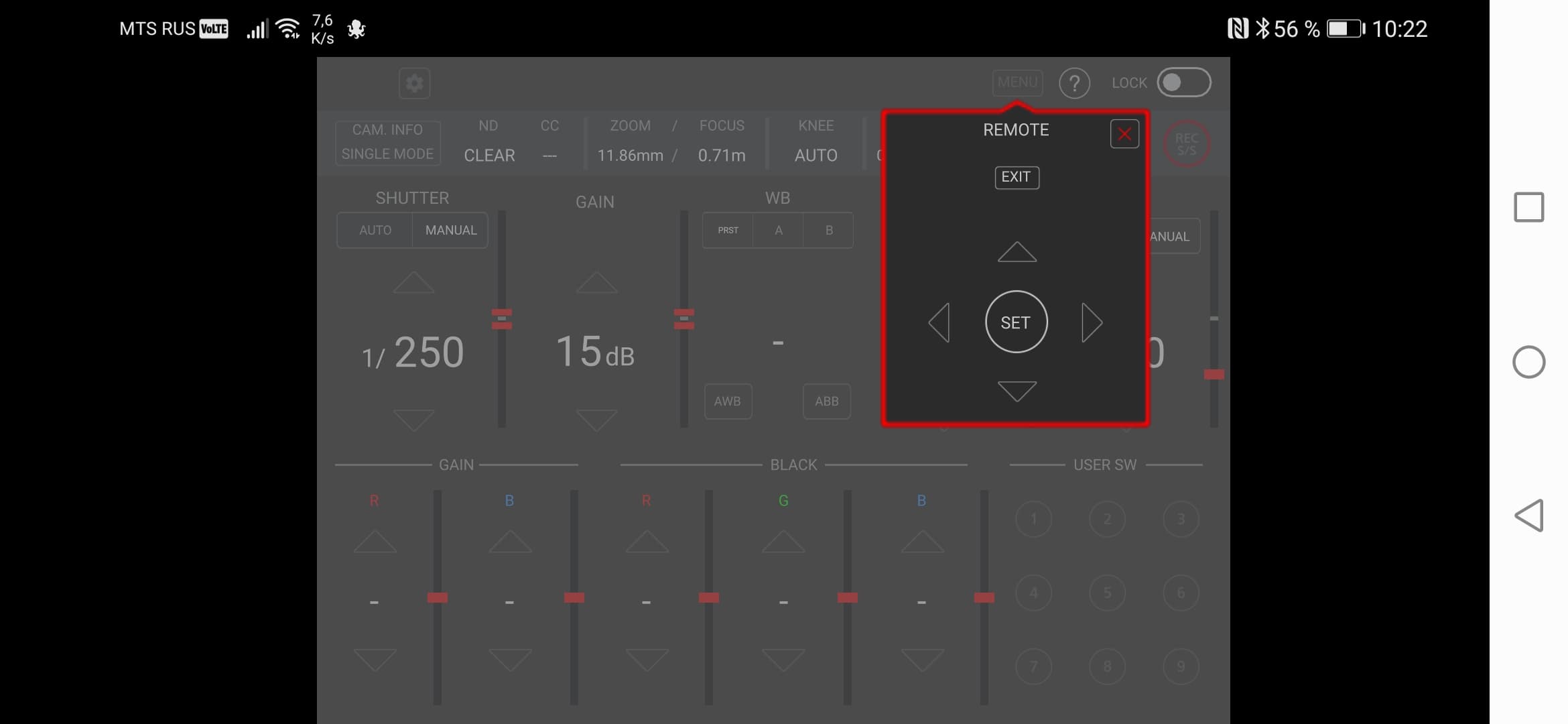 Для прямого управления камерой посредством беспроводной сети используется приложение HC ROP (версия для Android, версия для iOS). Программа представляет собой панель управления, интерфейс которой всегда имеет альбомную ориентацию и явно рассчитан на планшеты с большой диагональю. На смартфоне разглядеть органы управления и тем более задействовать их чрезвычайно непросто.