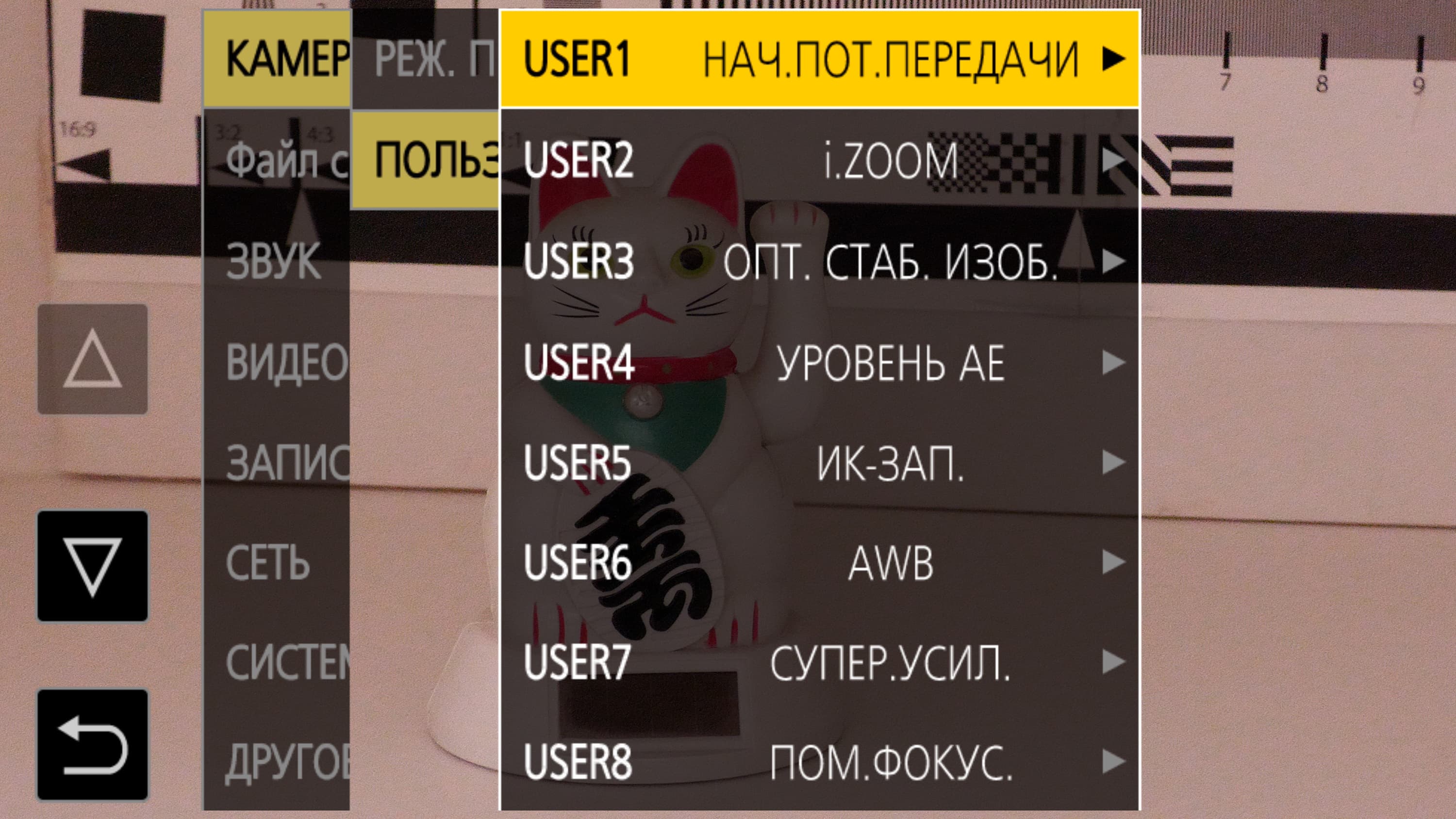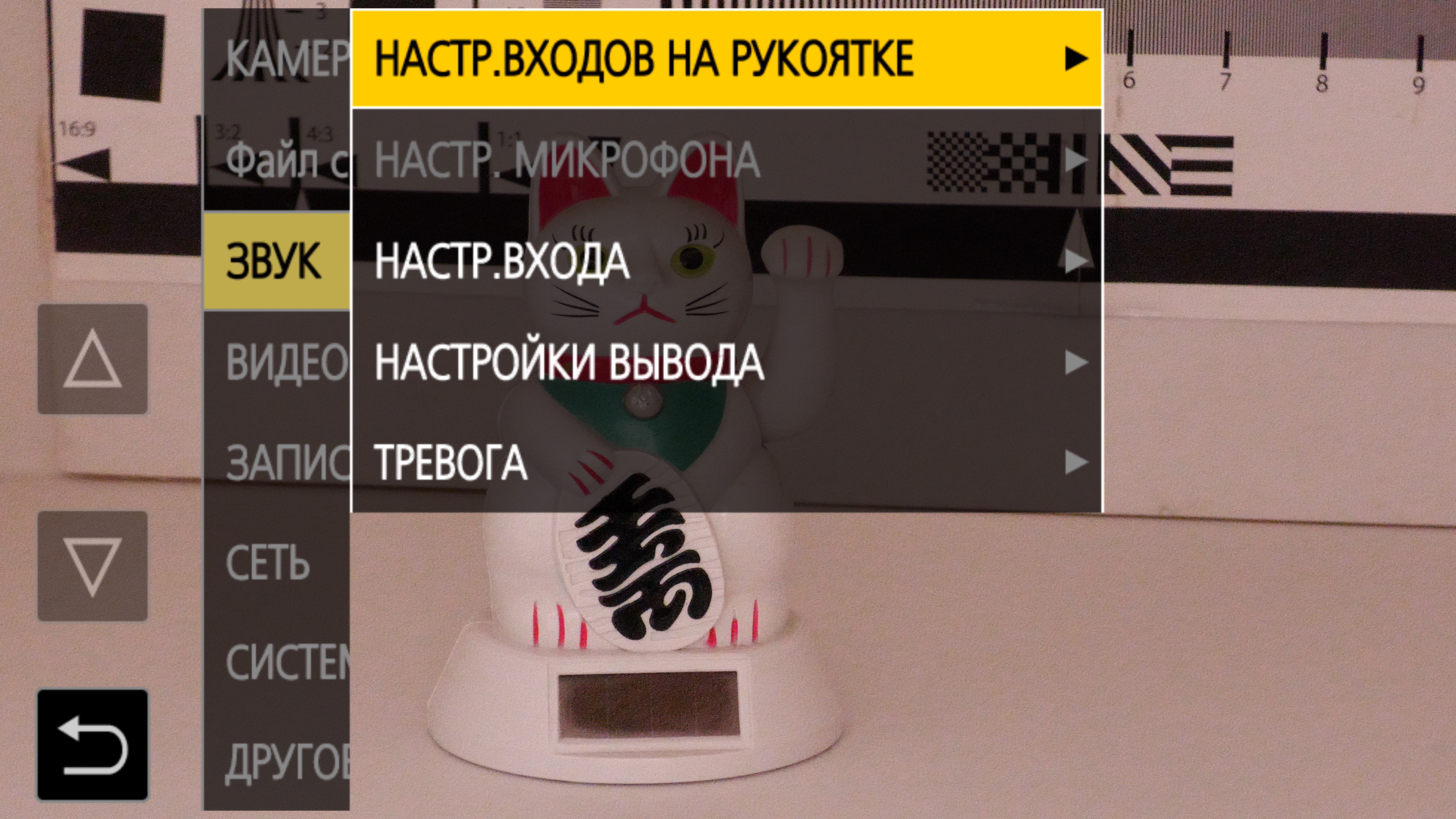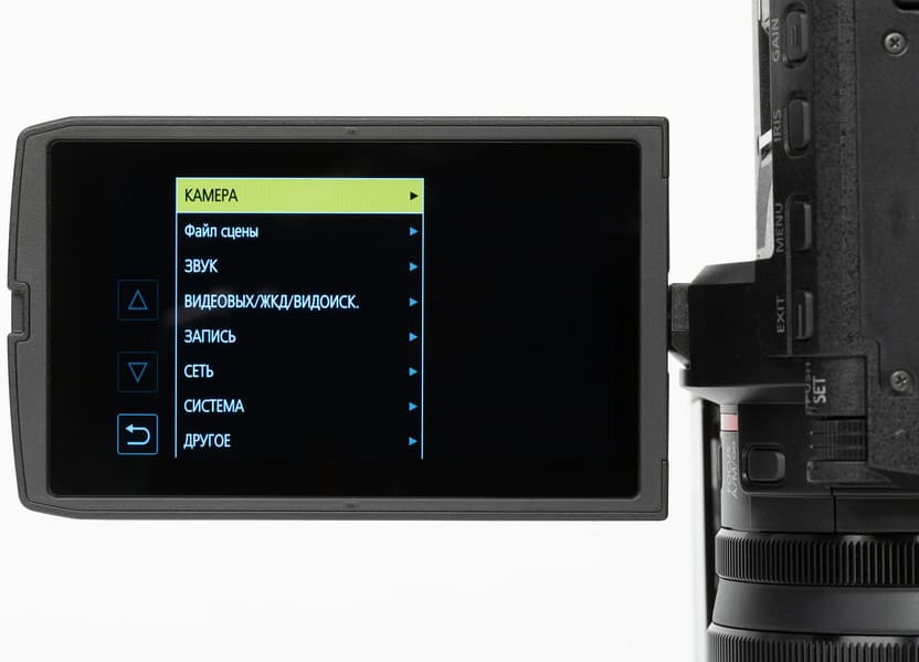 Дополнительное настроечное колесико с функцией нажатия находится в нижней части корпуса, ближе к объективу. Им удобно вызывать меню, выводить на дисплей пользовательские кнопки или производить настройки непосредственно во время записи.