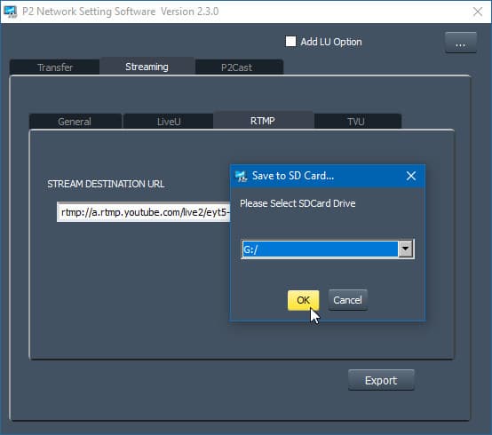 Если вводить длинные адреса затруднительно, работу облегчит небольшая фирменная утилита под названием P2 Network Setting Software. Здесь в нужной вкладке вводится адрес сервера, на который планируется производить вещание, после чего конфигурационный файл записывается на карту памяти.