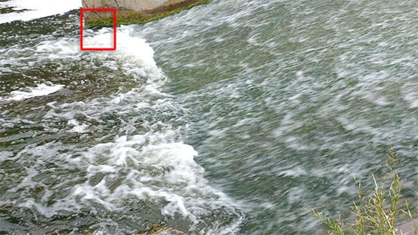 Коснемся качества кодирования. Для его оценки используем испытанный прием — съемку бурного водного потока. Несколько роликов, полученных в разных режимах и форматах, помогут понять, как работает аппаратный кодировщик камеры.