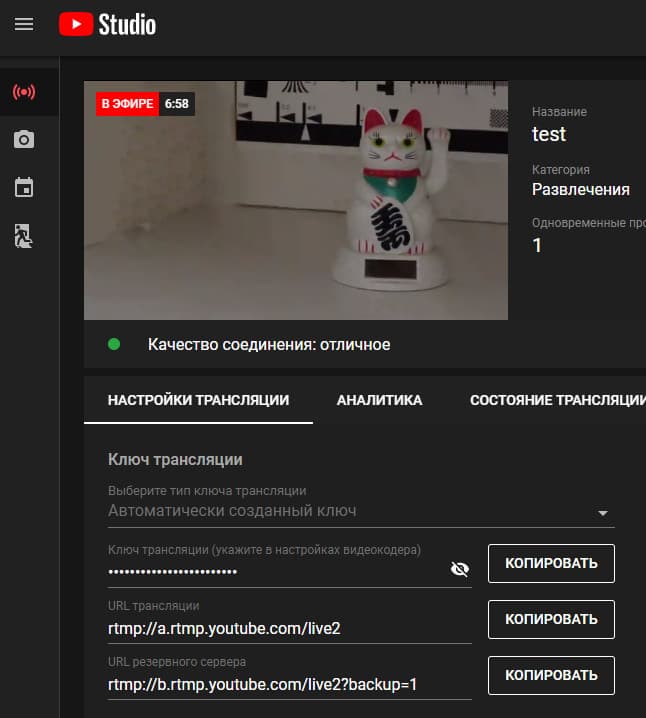 Достаточно не ошибиться при вводе адреса, добавив в конце секретный ключ трансляции (речь идет о трансляции в YouTube), и стрим обязательно состоится.