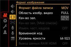 При выборе формата записи следует помнить, что угол обзора изменяется всякий раз при смене режимов записи, частоты кадров, а также при смене сканируемой площади сенсора. Это неизбежная особенность большинства камер. Подробные таблицы, где указаны различия между форматами, можно найти в руководстве пользователя.