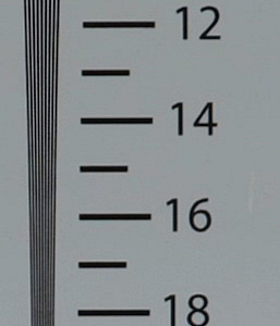 Теперь же — все, старую таблицу пора перелистывать. Разрешающая способность нашей камеры в максимальном режиме (6K, или 5888×3312) оказалась значительно выше 2000 ТВ-линий, причем как по горизонтальной, так и по вертикальной стороне кадра. Но и в 4K режиме камера дает высочайшую детализацию: линии начинают «слипаться» в районе цифры 18, что означает 1800-1900 ТВ-линий. Итог: разрешающая способность аппарата невероятно высокая. А с точки зрения оператора-любителя — пожалуй, излишне высокая. Ее никак не использовать сегодня в силу отсутствия нужных средств отображения. Конечно, остается вариант с композитингом, где требуется высочайшая детализация, но это уже вряд ли относится к любительской сфере.
