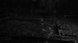 В следующем примере снята сцена, происходящая в 150 метрах от камеры на противоположном берегу реки — компания молодых людей оказалась неплохо освещена светом от разведенного костра, так что и в этом случае инфракрасная подсветка оказалась ненужной. Чувствительности датчика камеры более чем достаточно, чтобы распознать удаленные объекты наблюдения.