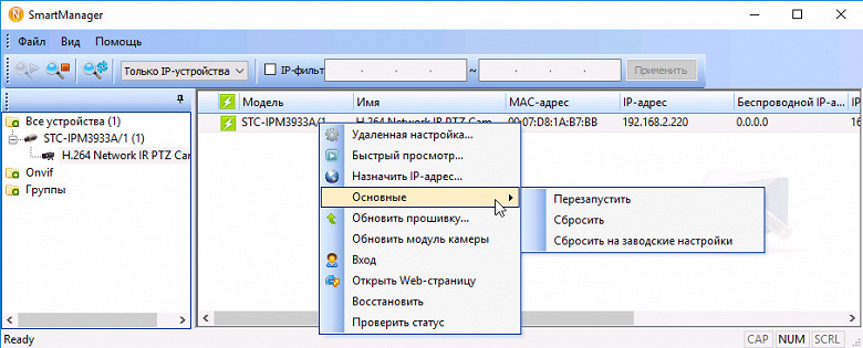Примерно такая же функциональность, но в более удобном исполнении, имеется в еще одной фирменной программе, SmartManager. Непосредственно из нее можно изменить IP-адрес камеры, запустить просмотр видеопотока и даже отрегулировать кое-какие настройки.