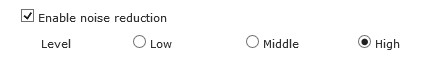 Эта функция требуется при съемке с недостатком освещенности. Ввиду того, что камера автоматически включает усиление, картинка испещряется цифровым шумом. Частично снизить уровень шума и призвана технология шумоподавления. Здесь, как и в случае с WDR, настройки изменяют степень агрессивности шумодава от низкой к высокой.