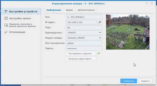 Пора вспомнить, что рассматриваемая камера имеет полную поддержку интерфейса ONVIF, что позволяет использовать аппарат в составе любых комплексов видеонаблюдения — как программных, так и программно-аппаратных. Пользуясь такой возможностью, мы без труда подсоединили аппарат к имеющемуся домашнему комплексу наблюдения, который работает на NAS Synology под управлением приложения Surveillance Station. После этого камера исправно посылала на удаленный сервер тревожные видеоролики в максимальном качестве.
