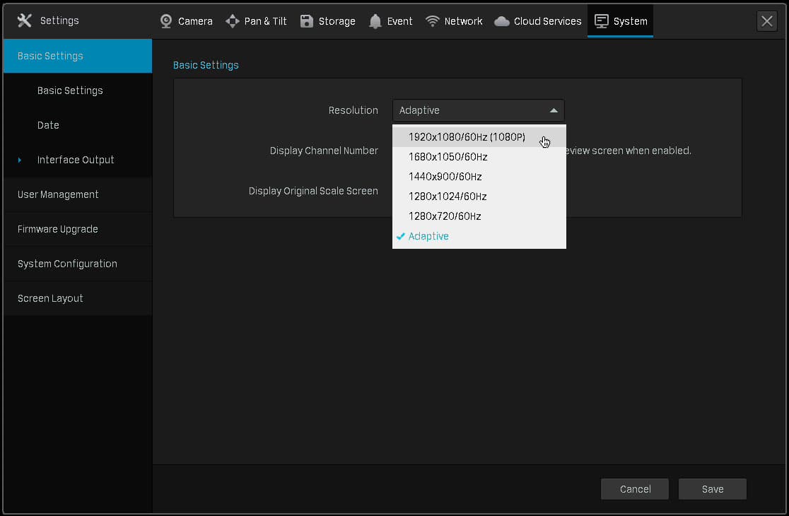 А вот второе аппаратное ограничение нашего регистратора действительно удручает. Речь о видеовыходе, максимальное разрешение которого составляет лишь 1920×1080 (Full HD). Почему так? Ведь регистратор в состоянии записывать 4K-видео и выводить на дисплей изображение с 16 камер одновременно! Здесь очень не помешал бы UHD-видеовыход, чтобы аппарат можно было подключить к большой 4K-панели и наблюдать за происходящим, не надевая очки и не ломая глаза. Но, увы, в списке доступных разрешений максимум — это Full HD.