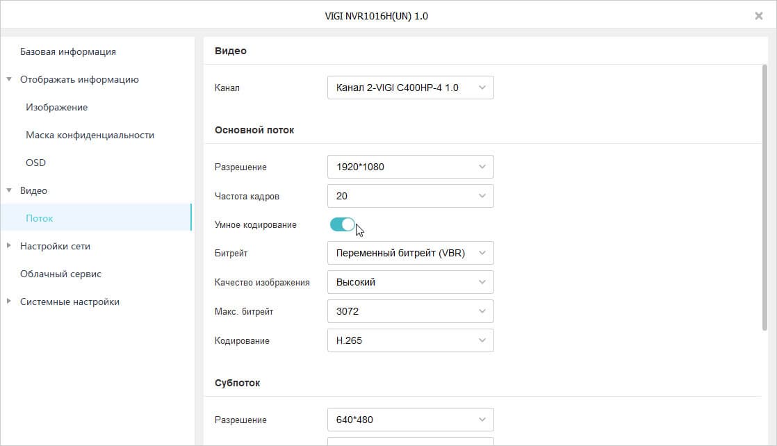 | Поддерживаемые видеокодеки | H.265+/H.265/H.264+/H.264 |