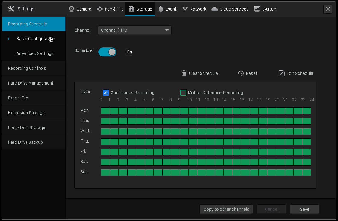 При этом имеется возможность создания расписаний записи для каждой камеры в отдельности.