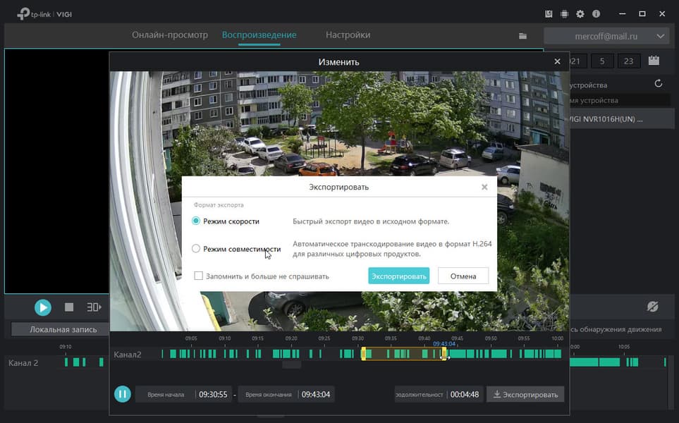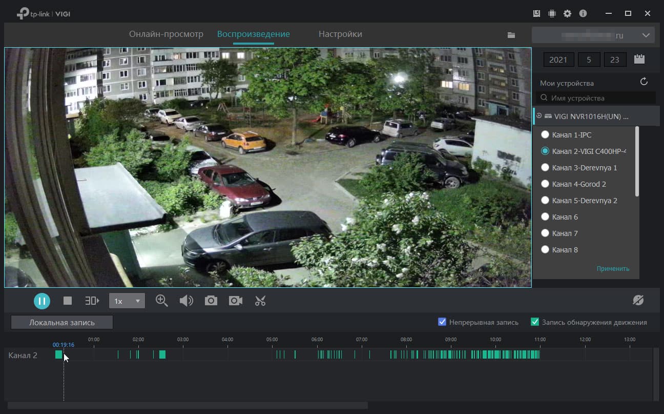 В отличие от многоканального просмотра архива в локальном софте регистратора, удаленно можно просмотреть записи только с одной выбранной камеры.