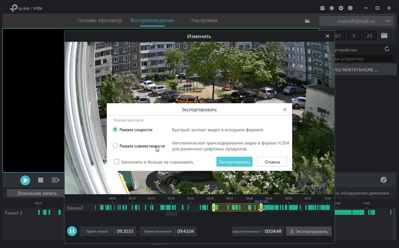 Зато разрешается экспорт, причем имеется выбор: быстрое копирование в исходном формате либо с перекодированием в H.264.