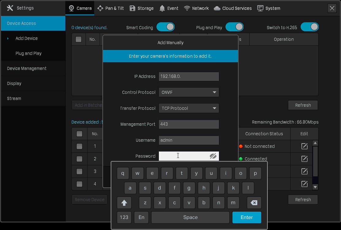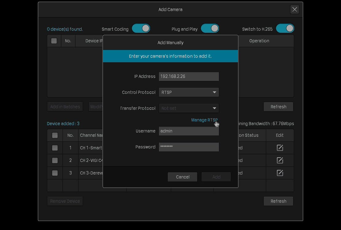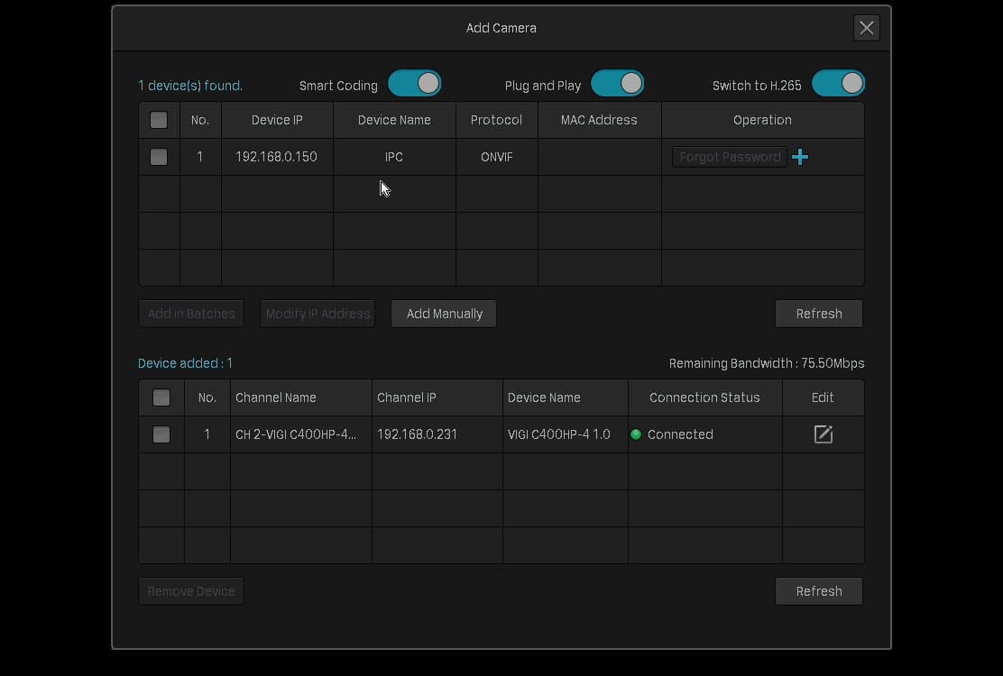 Добавление камер осуществляется как в автоматическом режиме, так и вручную. «Автоматом» регистратор распознает камеры TP-Link либо камеры, поддерживающие стандарты ONVIF. В прочих случаях, когда камеры доступны только по RTSP или находятся в другом сегменте локальной сети, эти аппараты придется подключать вручную, поодиночке.