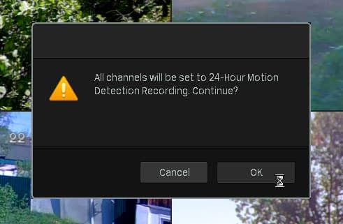 Кстати о событиях. Это непременное условия для видеонаблюдения. Чтобы включить постоянную с регистрацию движения всеми камерами, достаточно нажать одну кнопку в главном меню.
