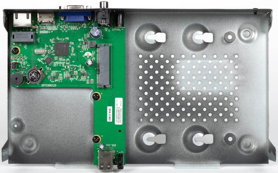 Конструкция регистратора состоит из металлического шасси и крышки, выштампованной также из металла. Боковые стороны крышки пронизаны вентиляционными щелями, через которые отводится воздух, нагретый электроникой и работающим жестким диском.
