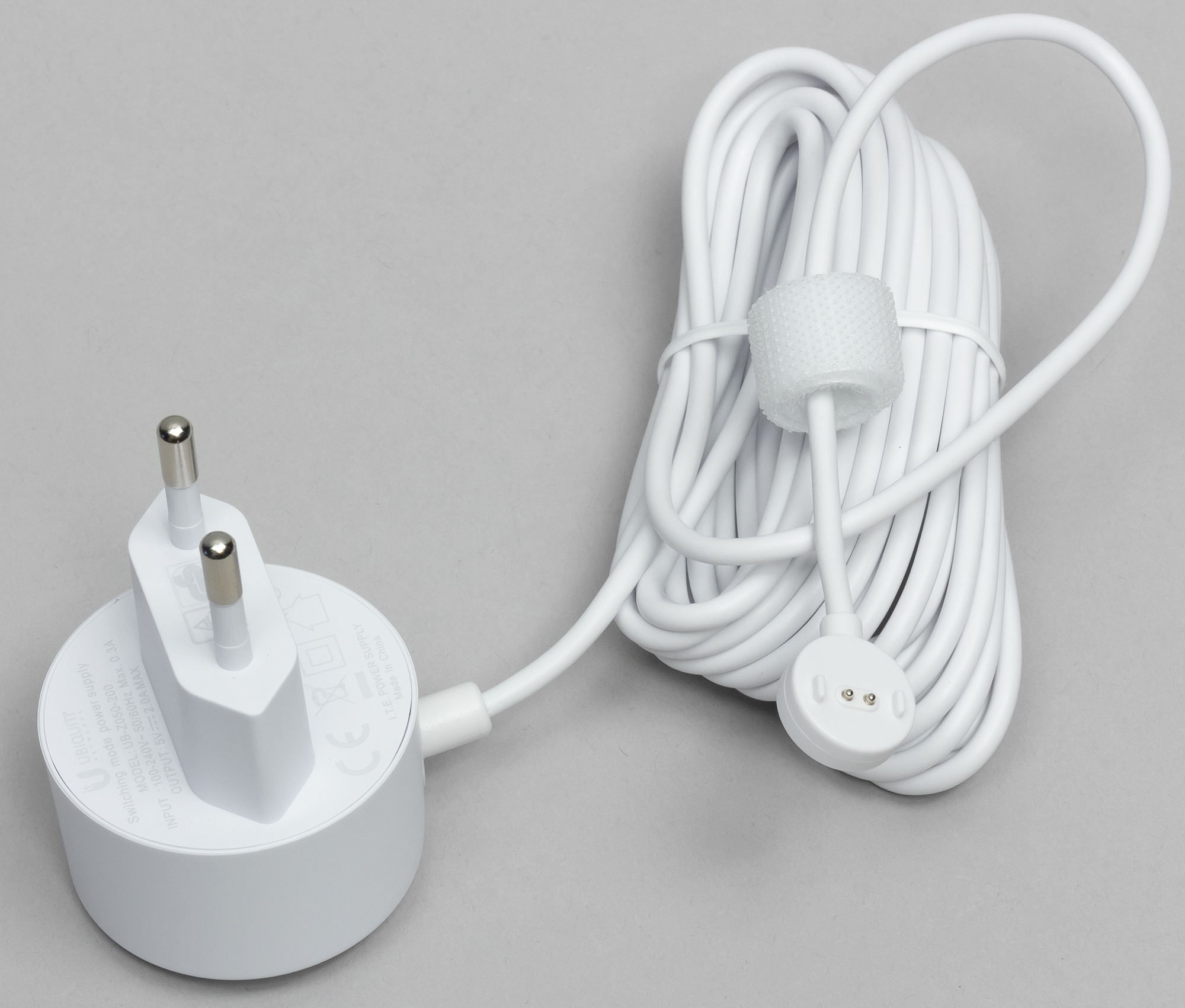 Корпус камеры, как и почти всей сопутствующей периферии, выполнен из матового белого пластика. Металлические же вставки, как на самой камере, так и в ее главной и единственной посадочной площадке, играют роль магнитного контакта, через который на камеру поступает питание.