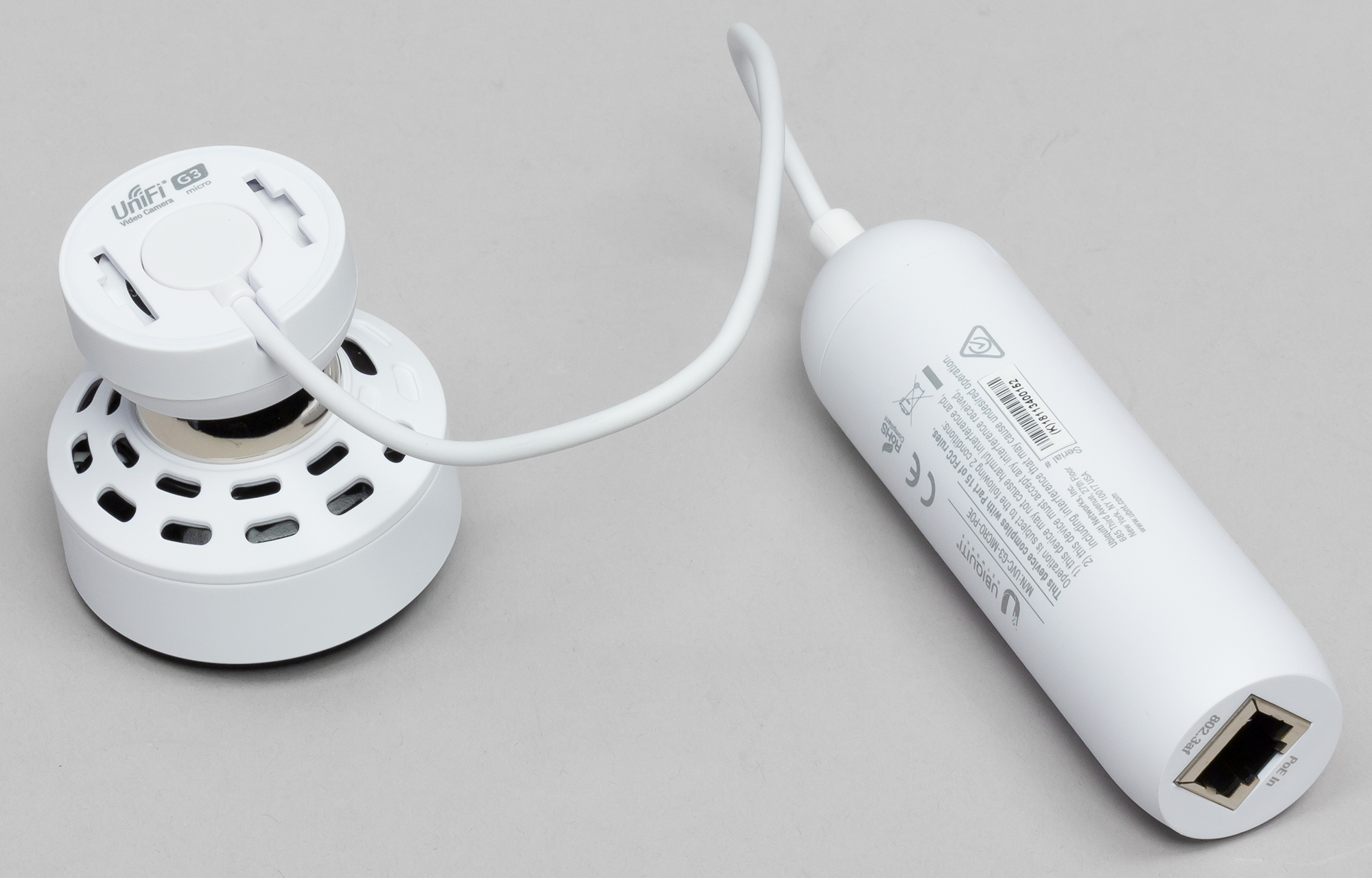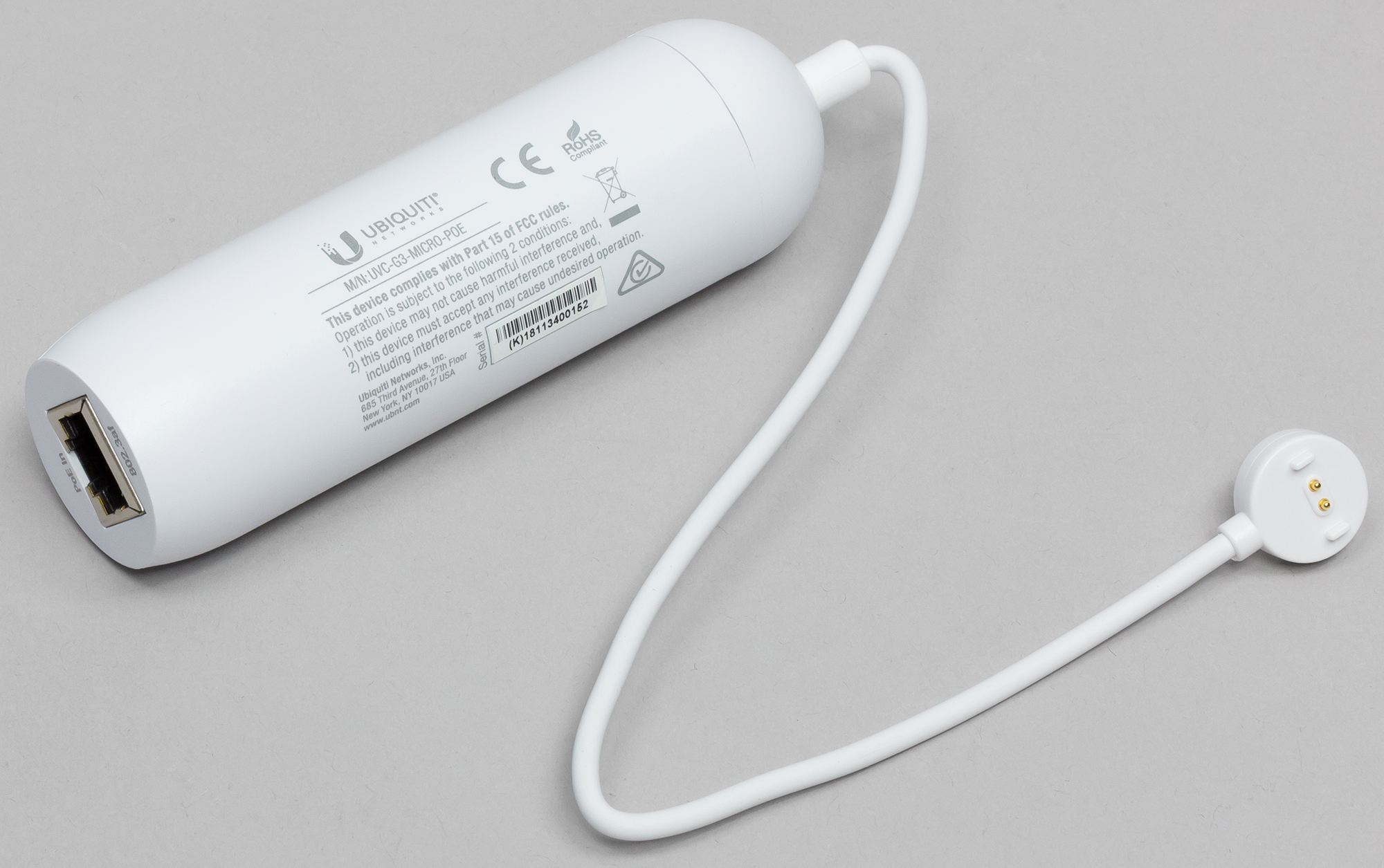 А вот это подозрительное устройство, имеющееся в комплекте, заслуживает отдельного разбора. Хотя, после того, как мы осмыслили функциональность устройства, разбор получается краткий и с негативным оттенком. Дело в том, что это — всего лишь переходник, забирающий питание из кабеля локальной сети (если оно там есть) и передающий его на камеру через все тот же двухконтактный штекер. С назначением мы разобрались, хорошо. Но откуда в локальной сети возьмется питание? Ответ: PoE (Power on Ethernet). Да, такая технология существует и давно используется. Вот только используется она иначе: назначение PoE состоит не в одной лишь подаче питания по локальной сети на какое-либо устройство, а в осуществлении IP-связи этого устройства с маршрутизатором или свитчем при одновременной подаче питания. Улавливаете разницу?
