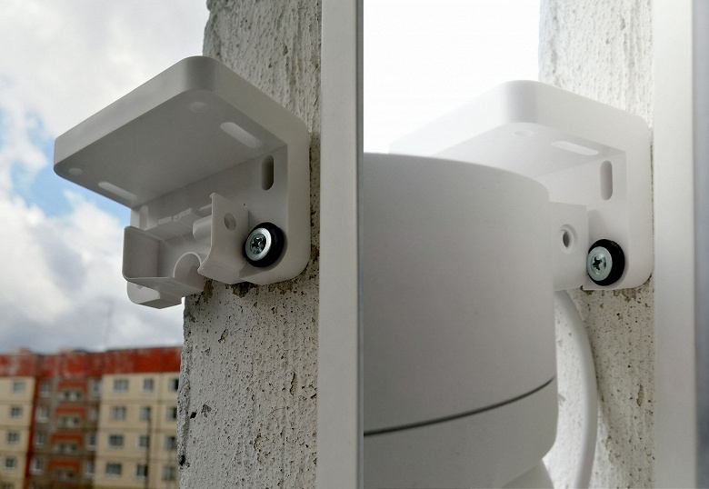 Длина 46-сантиметрового кабеля питания, выходящего из опорной площадки камеры, позволяет завести разъемы внутрь помещения, а не оставлять их на улице. Как это обычно делаем мы при тестировании: прямо через оконную раму. Гибкий провод не переломится, даже будучи зажатым между рамами.