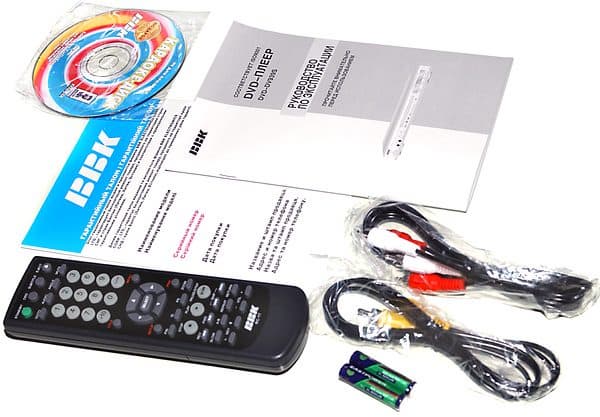 Красивая картонная коробка, снабженная с торца удобной ручкой для переноски, содержит в себе следующее: DVD-плеер, инструкцию на русском и английском языках, гарантийный талон на русском и украинском языках, пульт дистанционного управления RC-17, две щелочные AAA батарейки, кабель 1 × RCA, кабель 3 × RCA 1,5 м длиной каждый и караоке VideoCD диск. Все вместе упаковано в прозрачный пакетик, сам плеер фиксируется пенопластовыми вставками, исключающими его повреждение при транспортировке.