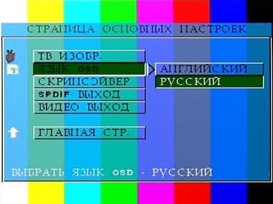 Меню может выводиться на двух языках — английском и русском.