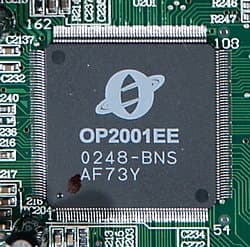 DVD плеер выполнен на чипсете серии OP, чипы OP2001EE и OP1002E, мы не нашли производителя этого чипсета в интернете. Особенностью этого чипа является интегрированный видеоЦАП с заявленными характеристиками 12 бит 54 МГц.