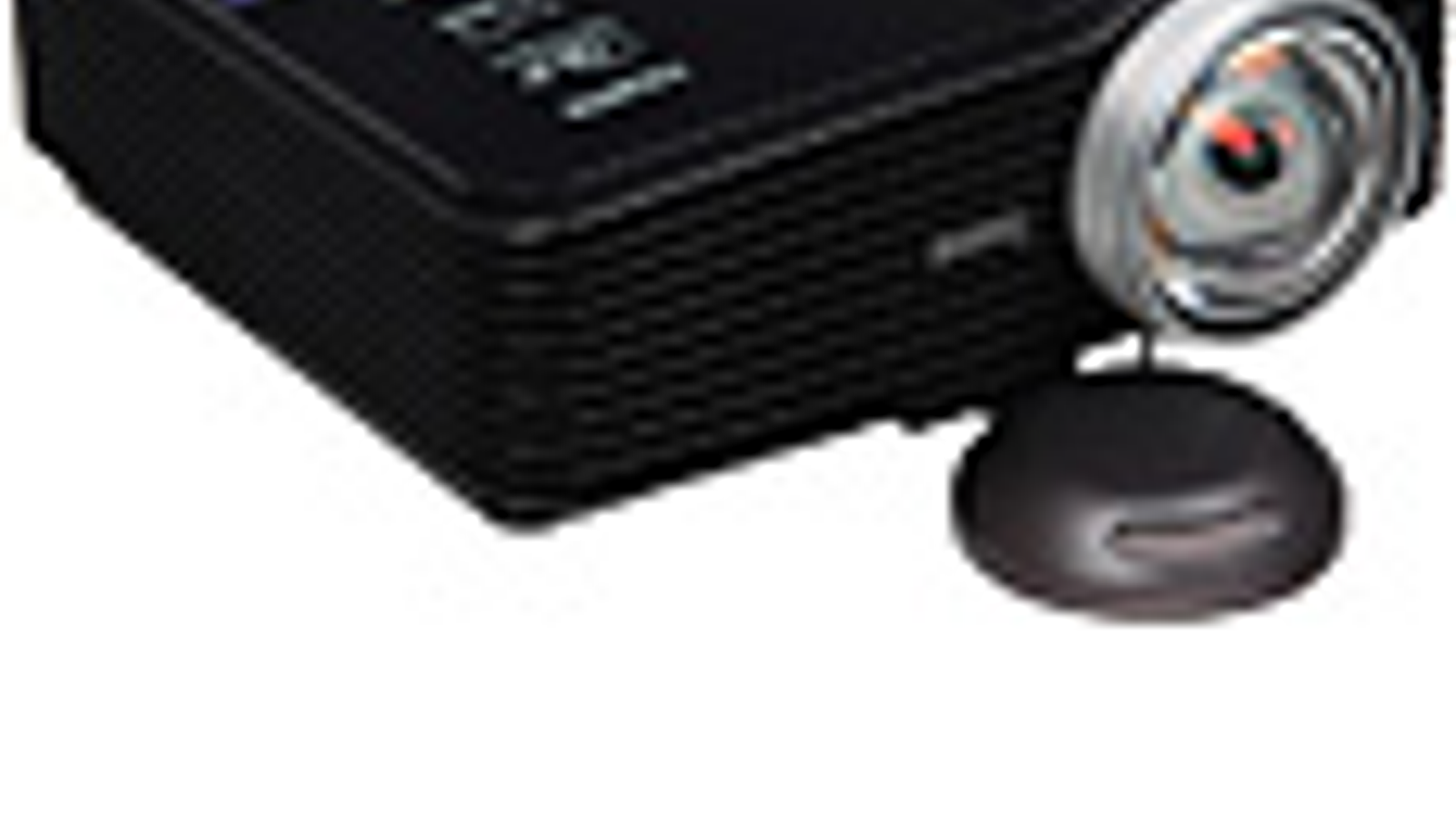 Проектор оснащен сверхширокоугольным объективом с фиксированным фокусным расстоянием. Фокусировка изображения на экране осуществляется с помощью ребристого кольца на объективе. Положение объектива относительно матрицы настроено так, что нижний край изображения находится чуть выше оси объектива (примерно на 7,5% от высоты проекции). В проекторе есть функции ручной и автоматической цифровой коррекции вертикальных трапецеидальных искажений (+/-30°). Настройку проекции может облегчить встроенный тестовый шаблон.