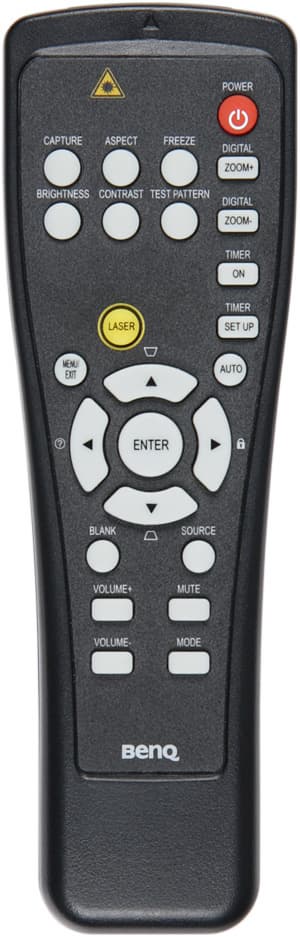 Корпус пульта изготовлен из матово-черного пластика. Большинство кнопок совсем не крупные и имеют очень-очень мелкие подписи. Блоком курсорных кнопок пользоваться удобно. Пульт оснащен встроенной лазерной указкой, включающейся кнопкой LASER.